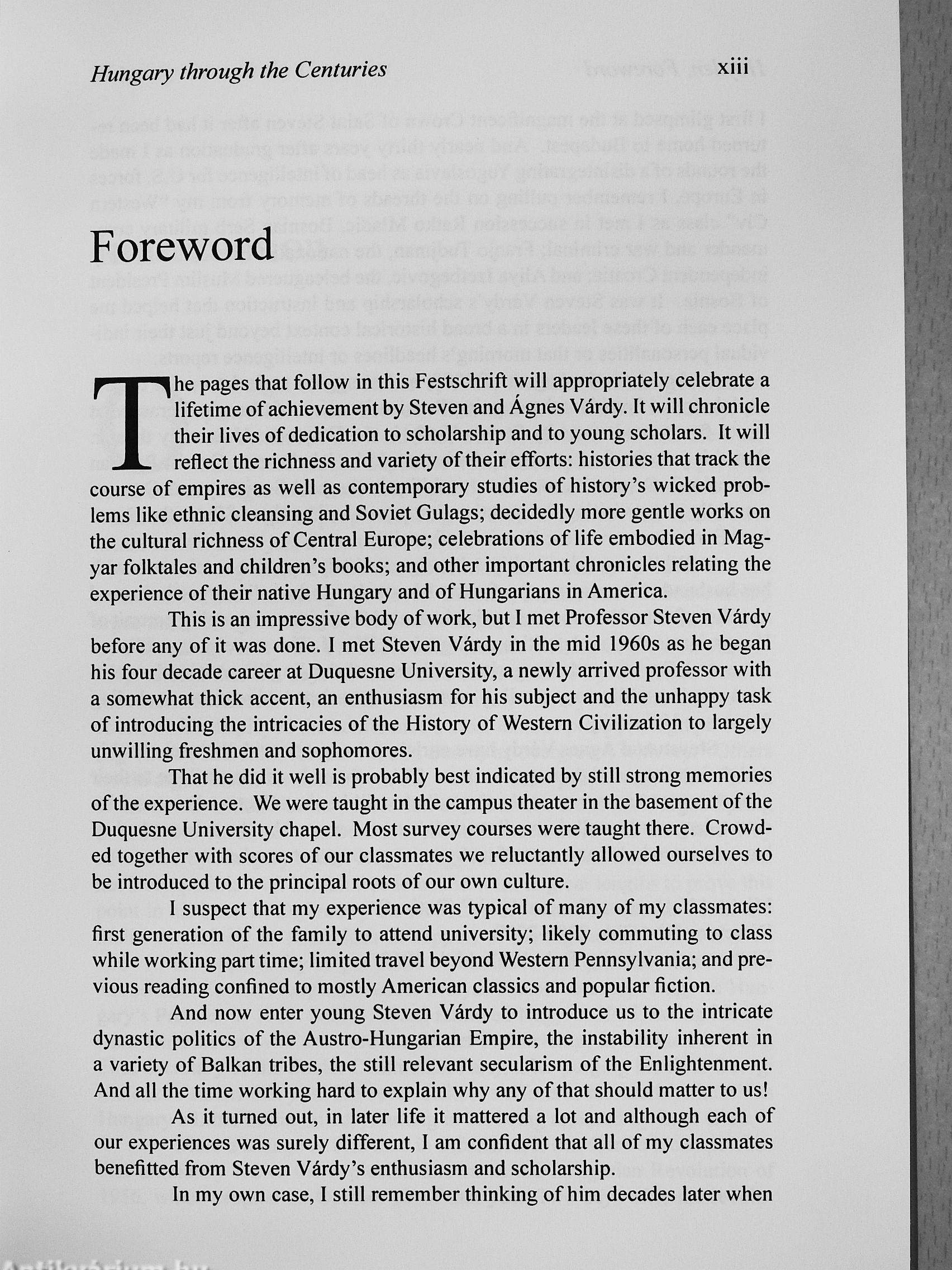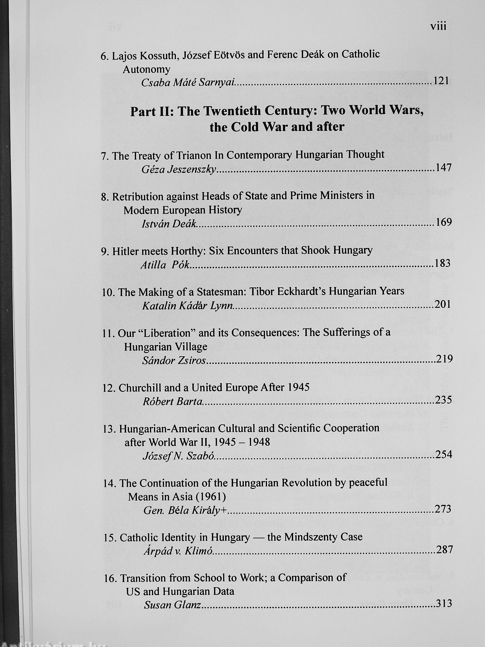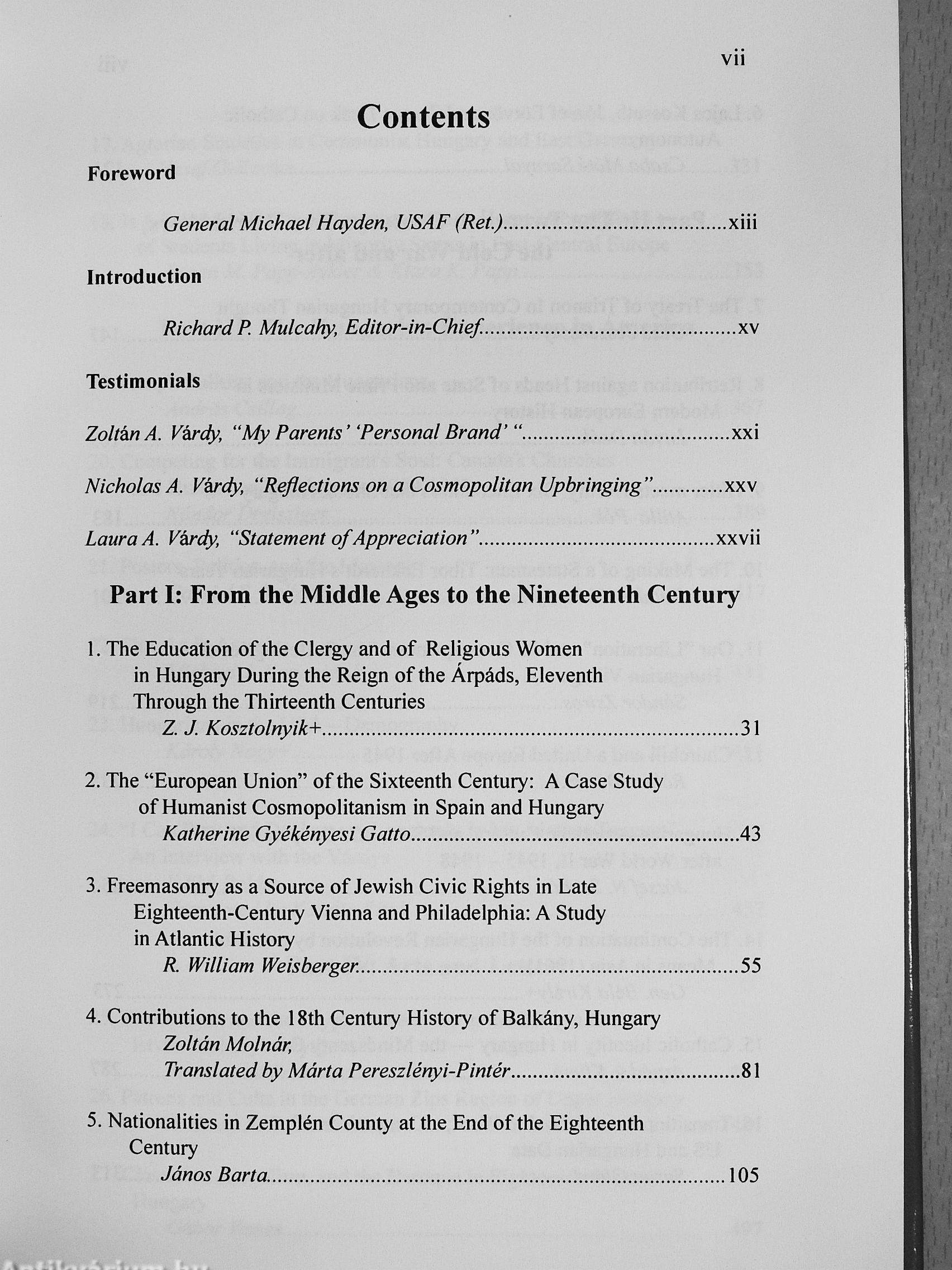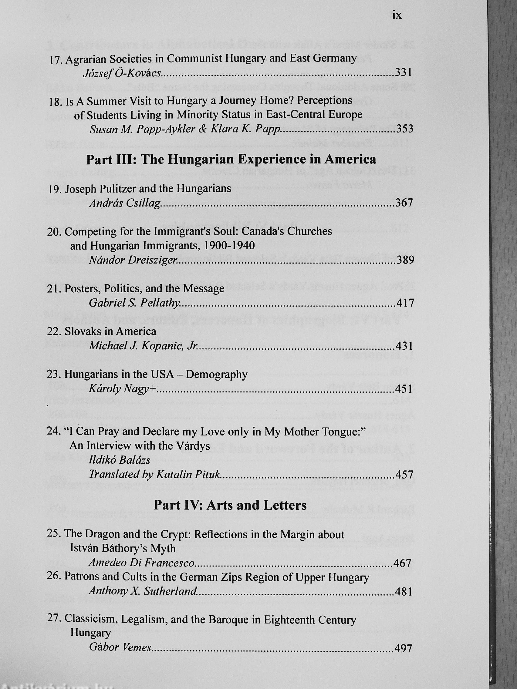 This volume consists of thirty-nine essays written by European and American fi colleagues, as well as by former Várdy students. It covers a wide variety of topics. Each contribution is a testament to the esteem and high regard in which the Várdys are held on both sides of the Atlantic for their dedication to the advancement of knowledge and scholarship.