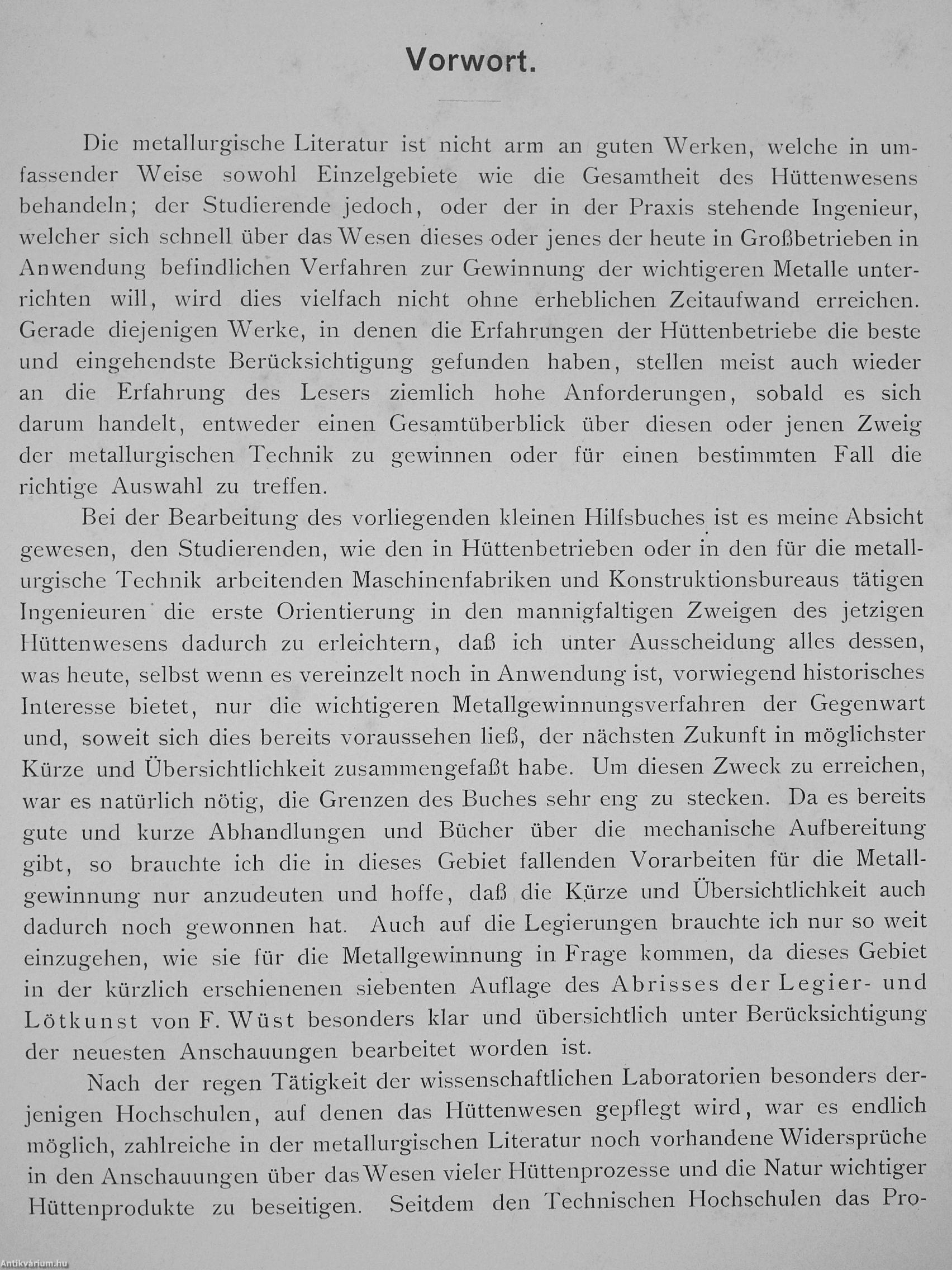 Kurze Übersicht über die heutigen Verfahren zur Gewinnung der wichtigeren Metalle