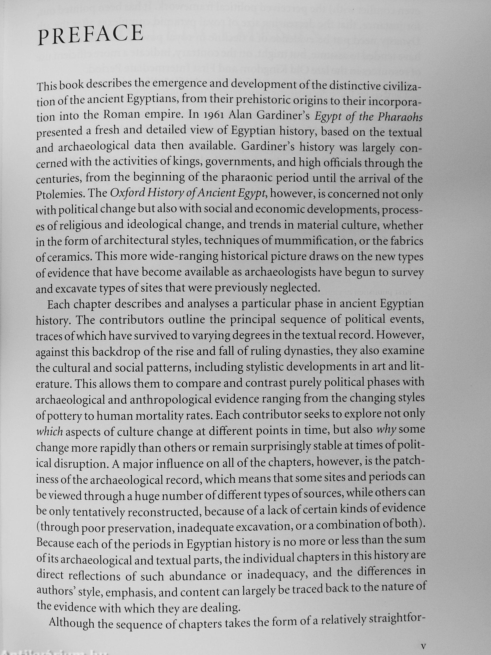 Tbe Oxford History of Ancient Ejjypt describes the emergence and dcN'elopmcnt of the distinctive civilization of the ancient Egyptians, from tlicir prehistoric origins to their conquest b\' the Persians, Greeks, and Romans. It details tlie changing nature of life and death in the Nile \'alley, which gave rise to some of the earliest masteipieces of art, architecture, and literature in the ancient world. This is the only history of ancient Eg\ pt to provide detailed historical coverage from the eariy Stone Age to its incorporation into die Roman Empire. It is illustrated with unusual, often rare colour plates, black and white images, drawings, and maps.