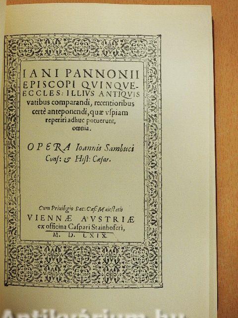 | Megjegyzés: | Hasonmás kiadás. Kardos Tibor: Janus Pannonius reneszánsz kori értékelése és költői metódusa című melléklettel, rajta nyomtatott aláírásával. |