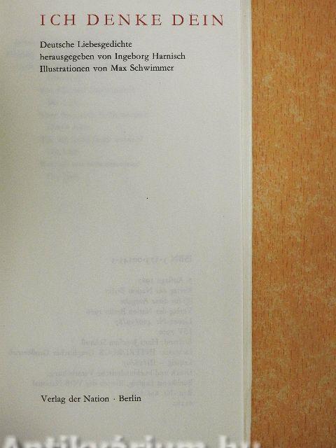 Rund 250 Liebesgedichte aus fünf Jahr-hunderten deutscher Literatur sind in die-ser Anthologie vereinigt. Die Auswahl reicht von der Zeit des Minnesangs bis zur Liebeslyrik unserer Tage, vom schlichten Volkslied bis zur anspruchs-vollsten lyrischen Aussage über ein Thema, das durchaus nicht so zeitfern und gesellschaftlich indifferent ist, wie es auf den ersten Blick erscheinen mag. Da-bei gestattet diese Gliederung nach Stim-mungskomplexen, die jeweils durch ein Goethe-Zitat eingeleitet werden, reizvolle Vergleiche im Neben- und Miteinander mittelalterlicher, klassischer und moder-ner Liebesdichter. Der Band enthalt u. a. Gedichte von Walther von der Vogel-weide, Johann Christian Günther, Goethe, Eichendorff, Mörike, Heine, Hebbel, Keller, Storm, C. F. Meyer, Liliencron, Dehmel, Rilke, Hesse, Heym, Trakl, Else Lasker-Schüler, Wedekind, Morgenstern, Ringelnatz, Tucholsky, Stefan Zweig, Gertrúd Kolmar, Brecht, Becher, Margul-Sperber, Maurer, Fürnberg, Wiens, Hermlin, Eich, Ingeborg Bachmann, Füh-mann, Deicke, Hacks, Jakobs, Kahlau, Tilgner, Grasnick, Jo Schulz, Steiniger, Endler, Rainer Kirsch. Eine besondere Bereicherung dieses in einem schmalen Taschenbuchformat er-scheinenden Bandchens stellen die 20 Federzeichnungen aus dem Nachlafí von Max Schwimmer dar.