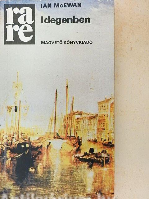 Élet és halál, az emberi együvé tartozás végső kérdései foglalkoztatják a harmincöt éves Ian McEwan novelláit, regényeit és színműveit, amelyekkel az utóbbi években felzárkózott az angol irodalom legjobbjai közé. Az Idegenben vezérmotívum "a nemek harca": a konkrétság és a jelképesség különböző árnyalataiban, más-más hangnemben és a legrafináltabb variációkban ez bukkan fel minduntalan ebben a szinte kimeríthetetlenül gazdag regényben. egy pusztuló, régi város labirintusában bolyong Mary és Colin, a térkép híján folyvást eltévedő, két angol turista. A véletlen egy idősebb, helybéli férfit hoz útjukba, aki erőnek erejével pártfogásba veszi őket. Az erőszakos vendéglátás során szabályszerűen vallaniuk kell: nem, nem házasok, csak amúgy együtt élnek, már hét esztendeje, igen, Marynak van két gyereke az előző házasságából, azok most az apjuknál vannak egy vidéki kommunában. Vendéglátójuk, Robert a maga szülői házának szilárd tekintélytiszteletére épülő, szigorú rendjét szegezi szembe...