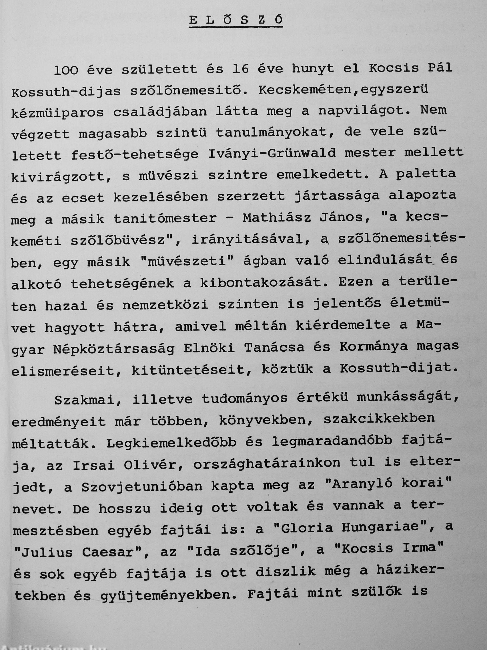 | Megjegyzés: | A Kossuth-díjas, kiváló szőlőnemesítő 100. születésnapjára írt megemlékezés. Fekete-fehér fotókkal. |