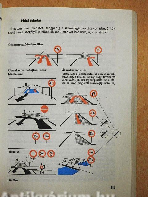 | Tizedik alkalom - Hegymenet, útkereszteződés felismerése, a "hordóurítás", kézifékes elindulás, zöldhullám, jelzőlámpák jelzéseinek értelmezése, rendőri irányítás, értéksorrend | 138 |