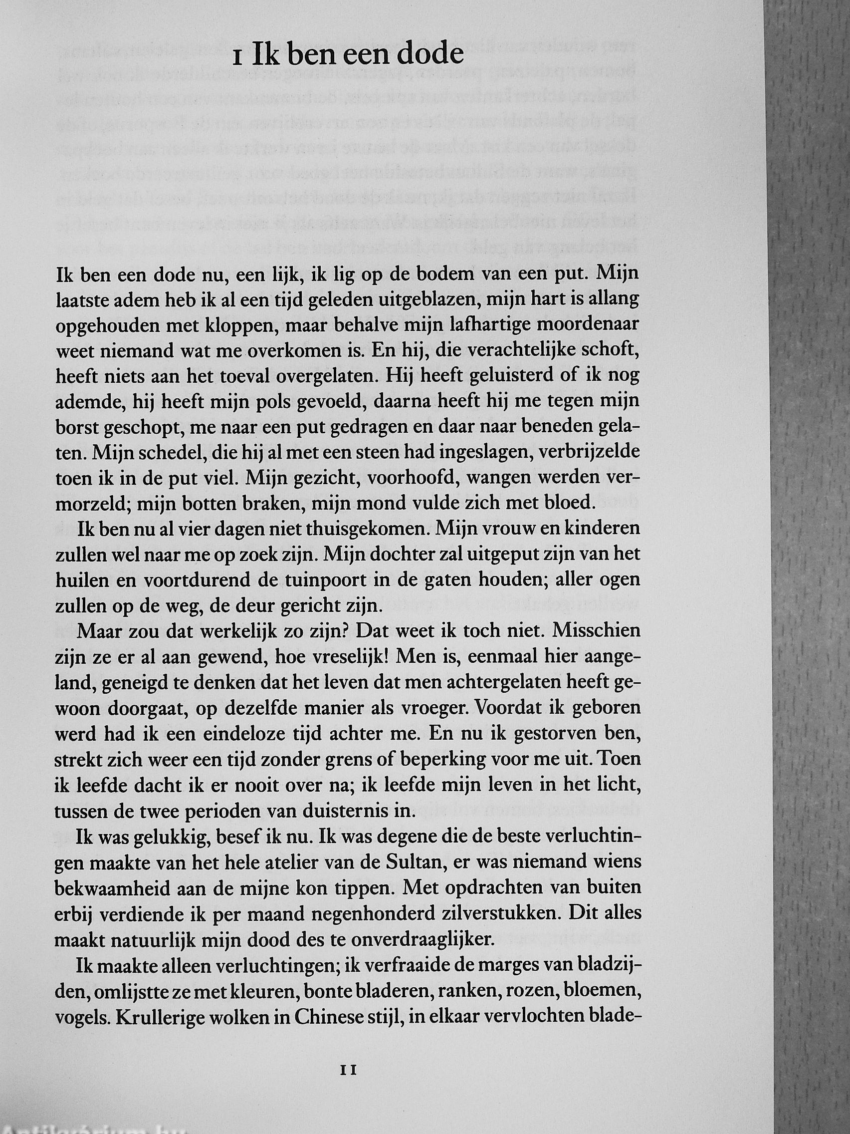 De vader van Sjekure heeft een geheime opdracht gekregen van de Osmaanse sultan. Eén voor één ontbiedt hij hofminiatuurschilders bij zieh. Deze meesterschilders werken samen aan een boek voor de sultan, onder supervisie van Sjekures vader. Ze maken hiervoor tekeningen in een westerse stijl. Het is een uiterst controversiële opdracht, die indruist tegen de heersende opvattingen. Wanneer een van de schilders vermoord wordt, vraagt Sjekures vader zijn neef Kara om hulp. Sjekure en Kara waren als kinderen erg verliefd op elkaar, en nu krijgt deze liefde een kans opnieuw op te bloeien. Een prachtig liefdesverhaal, een onvervalste thriller en een fascinerende vertelling over de verschillen in westerse en oosterse opvattingen over kunst en daarmee over het leven.