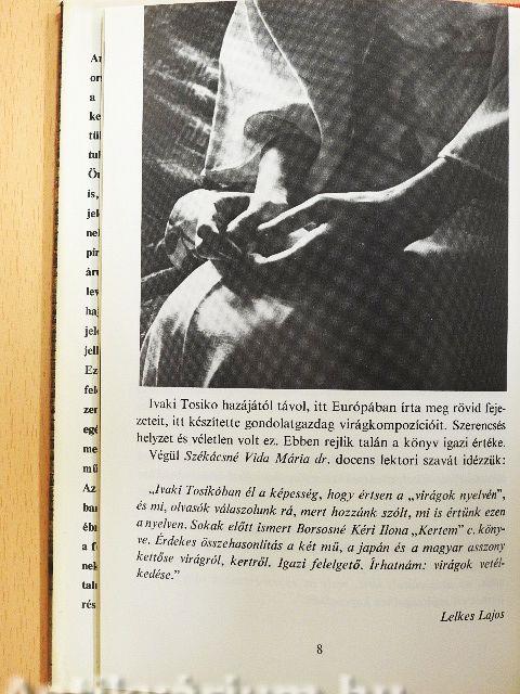 Amikor elhatároztuk férjemmel, hogy Magyarországra jövünk tanulni és dolgozni, először a magyar történelem legjelentősebb fejezeteit kezdtük tanulmányozni, mert ebből ismerhettük meg legjobban e nép nemzeti szokásait, tulajdonságait, érzés- és gondolatvilágát. Örömmel fedeztem fel, hogy Magyarországon is, akárcsak Japánban, ősidők óta sajátos jelentése van a virágoknak, fáknak, cserjéknek. Olvastam, hogy a szerelem színe égőpiros, tehát egy szál szegfű vagy rózsa többet árul el színével annak, aki azt kapja, mint egy levélbeli vallomás; hogy a legények házasodási hajlamát a kalapjuk mellé tűzött rozmaring jelentette, a fehér liliom a tisztaság, szűziesség jelképe, és felsorolhatnék még sok példát. Ezeknek mind megtalálhatók a japán megfelelői is. A magyar népdalok (amelyekkel zenetudós férjem ismertetett meg) a virágnyelv egész kötetét hordozzák. Éppen ezért biztosan megértésre találnak gondolataim az ikebana-művészetről.
