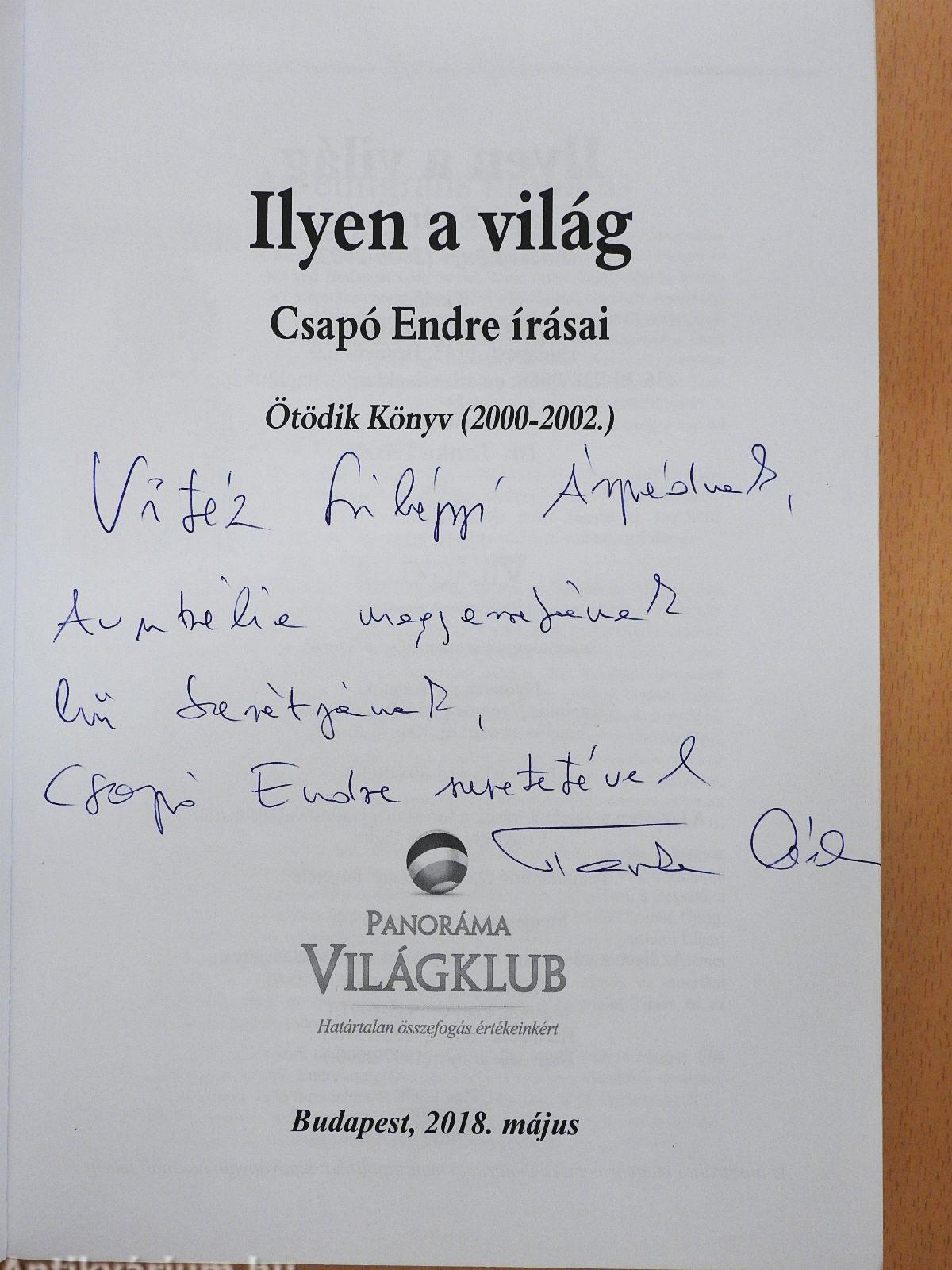 Az elmúlt évben kiadott Negyedik Könyvének megjelenése óta két jelentős esemény történt, amit a Kiadó örömmel közöl az Olvasókkal: Csapó Endre 2017. november 11-én jó erőben, egészségben, szerető családi, baráti közösségben betöltötte a 96. életévét. Ezt megelőzően pedig elsőként vehette át Ausztráliában a legrangosabb elismerést, a iVIultikulturális Újságírásén Életmű díjat, a több mint 50 évi újságírói, főszerkesztői tevékenységéért. Mindkét esemény még inkább arra ösztönöz, olvassuk értő figyelemmel az Ötödik könyv írásait!
