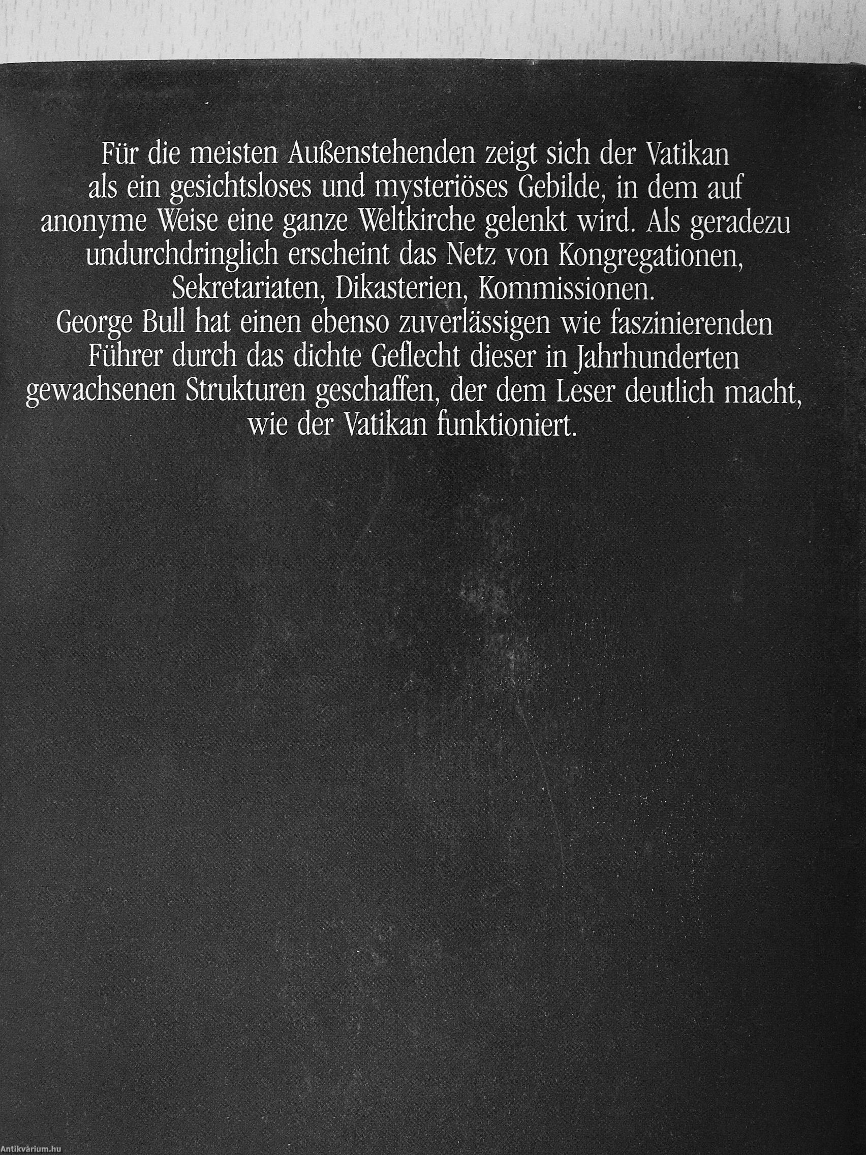 Für die meisten Außenstehenden zeigt sich der Vatikan als ein gesichtsloses und mysteriöses Gebilde, in dem auf anonyme Weise eine ganze Weltkirche gelenkt wird. Als geradezu undurchdringlich erscheint das Netz von Kongregationen, Sekretariaten, Dikasterien, Kommissionen. George Bull hat einen ebenso zuverlässigen wie faszinierenden Führer durch das dichte Geflecht dieser in Jahrhunderten gewachsenen Strukturen geschaffen, der dem Leser deutlich macht, wie der Vatikan funktioniert.