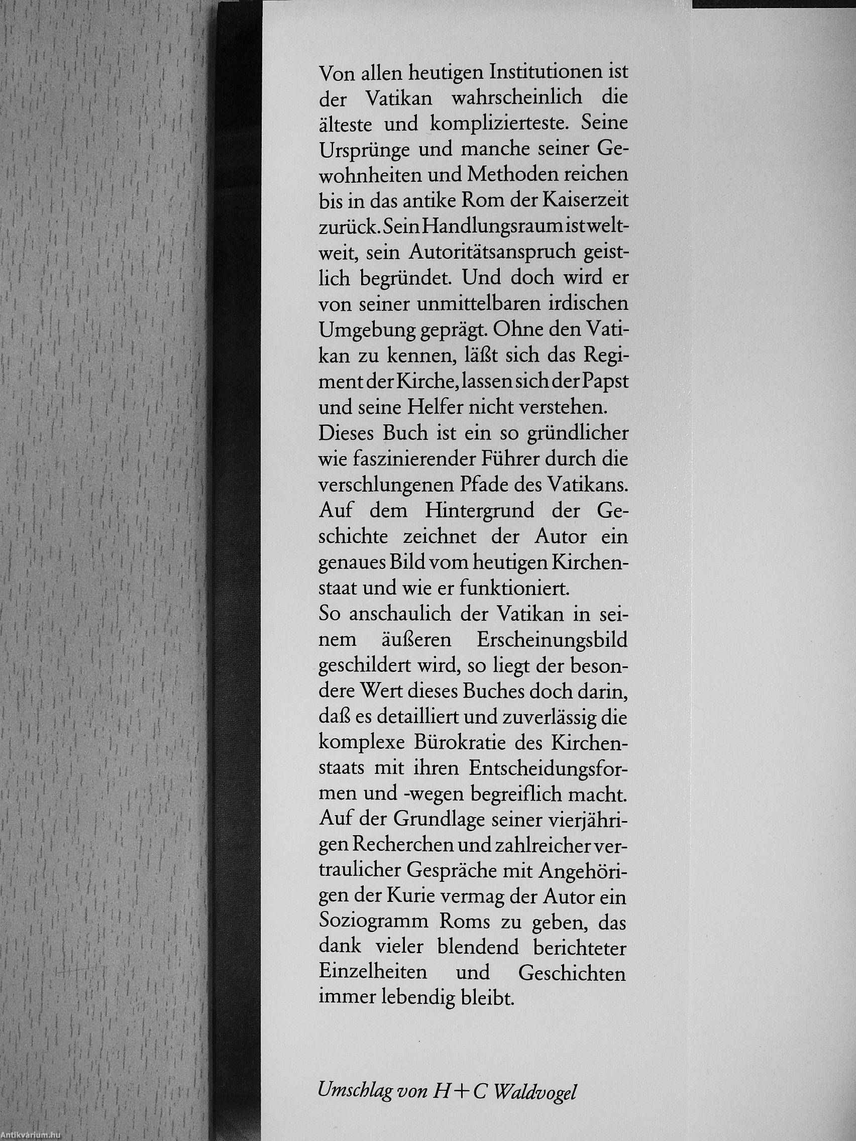 Von allen heutigen Institutionen ist der Vatikan wahrscheinlich die älteste und komplizierteste. Seine Ursprünge und manche seiner Gewohnheiten und Methoden reichen bis in das antike Rom der Kaiserzeit zurück. Sein Handlungsraum ist weltweit, sein Autoritätsanspruch geistlich begründet. Und doch wird er von seiner unmittelbaren irdischen Umgebung geprägt. Ohne den Vatikan zu kennen, läßt sich das Regiment der Kirche, lassen sich der Papst und seine Helfer nicht verstehen. Dieses Buch ist ein so gründlicher wie faszinierender Führer durch die verschlungenen Pfade des Vatikans. Auf dem Hintergrund der Geschichte zeichnet der Autor ein genaues Bild vom heutigen Kirchenstaat und wie er funktioniert. So anschaulich der Vatikan in seinem äußeren Erscheinungsbild geschildert wird, so liegt der besondere Wert dieses Buches doch darin, daß es detailliert und zuverlässig die komplexe Bürokratie des Kirchenstaats mit ihren Entscheidungsformen und -wegen begreiflich macht. Auf der Grundlage seiner vierjährigen Recherchen und zahlreicher vertraulicher Gespräche mit Angehörigen der Kurie vermag der Autor ein Soziogramm Roms zu geben, das dank vieler blendend berichteter Einzelheiten und Geschichten immer lebendig bleibt.