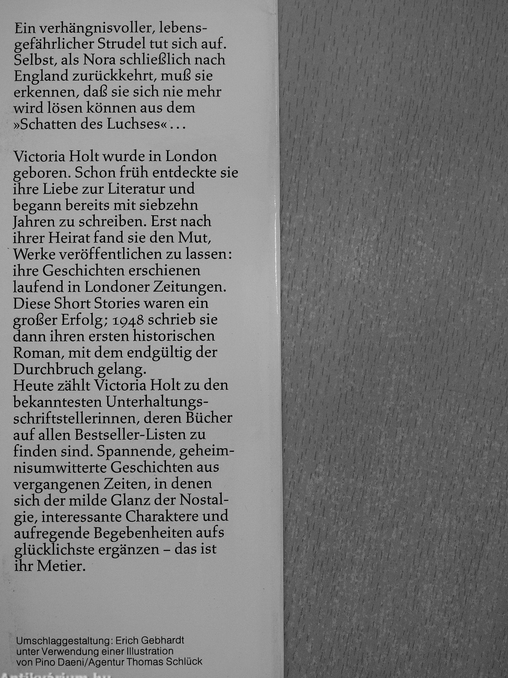 Ein verhängnisvoller, lebensgefährlicher Strudel tut sich auf. Selbst, als Nora schließlich nach England zurückkehrt, muß sie erkennen, daß sie sich nie mehr w^ird lösen können aus dem »Schatten des Luchses«