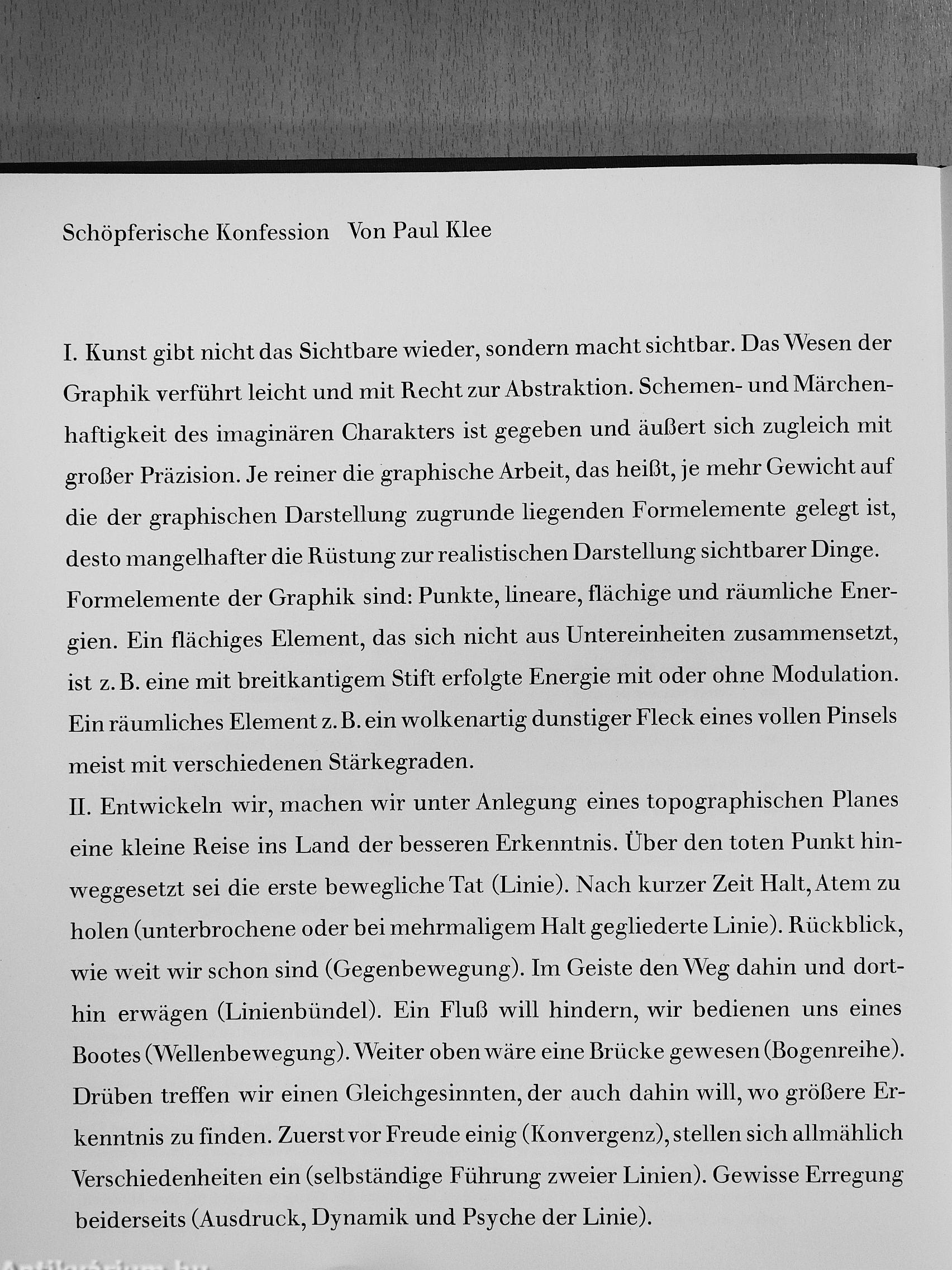Es war ein glücklicher Einfall, für dieses Buch vier verschiedene und für diese Aufgabe besonders qualifizierte Interpreten zu Bildbeschreibungen einer Reihe vorzüglich reproduzierter Aquarelle und Zeichnungen zusammenzubitten, die jeder in ihrer ganz persönlichen Art, gleichsam in Ideal-Konkurrenz, neue Wege in dieses anmutig-unheimliche Zwischenreich eröffnen. Die vier Interpreten ergänzen sich und sind durchweg poetisch einfühlend gestimmt, wie das dem Wesen dieser Kunst entspricht. Eingeleitet wird das splendid gedruckte Werk durch Klees berühmte Abhandlung >Schöpferische Konfession< und einen Aufsatz von Werner Haftmann über des Künstlers geschichtlichen Auftrag. Die Zeit