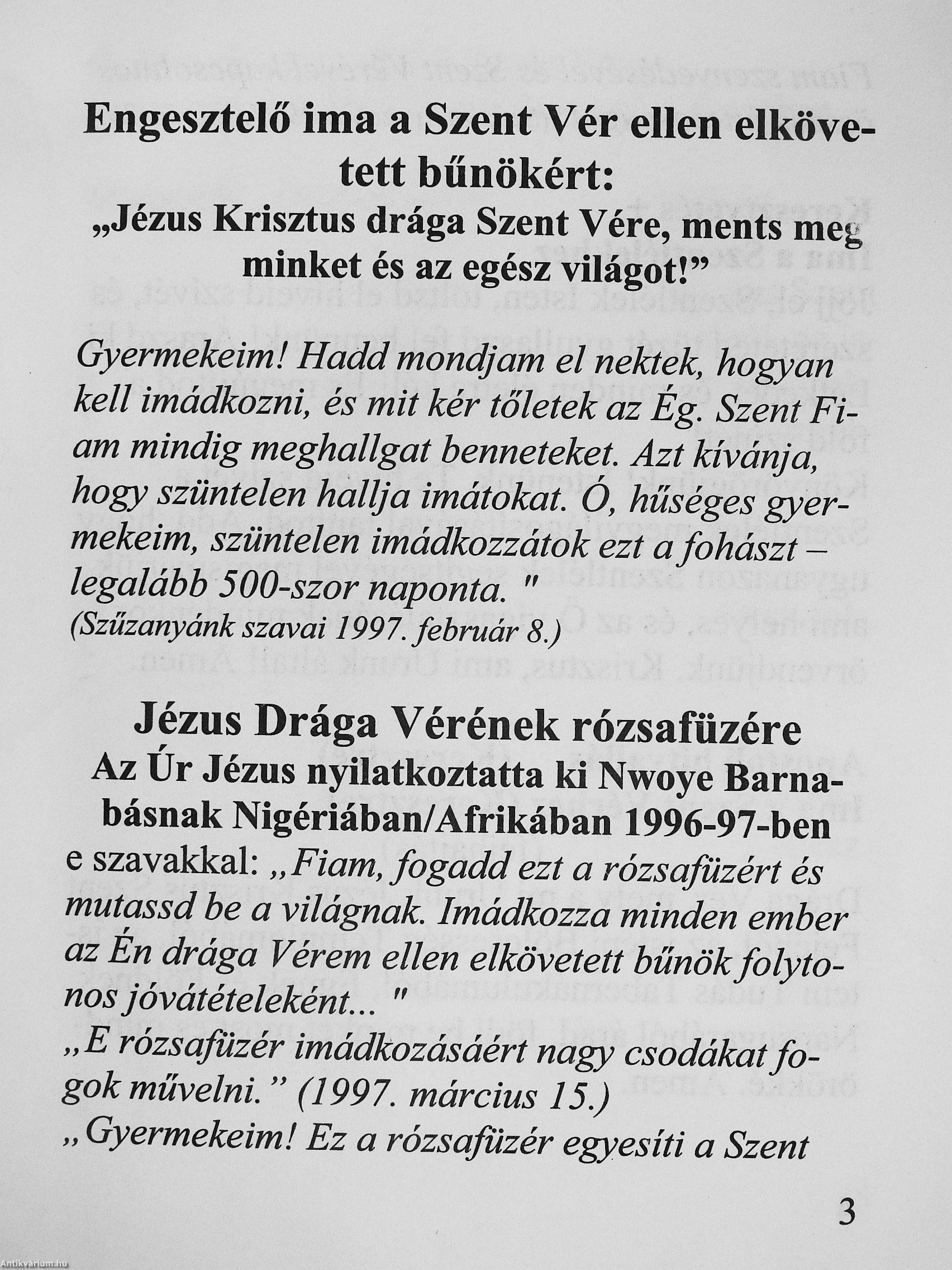 Imák Jézus Krisztus drága Szent Véréhez