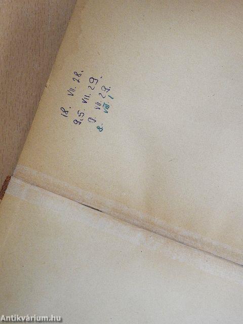 A borítón egy folt látható. Egy oldalon bejegyzések találhatók. A kötés javított.