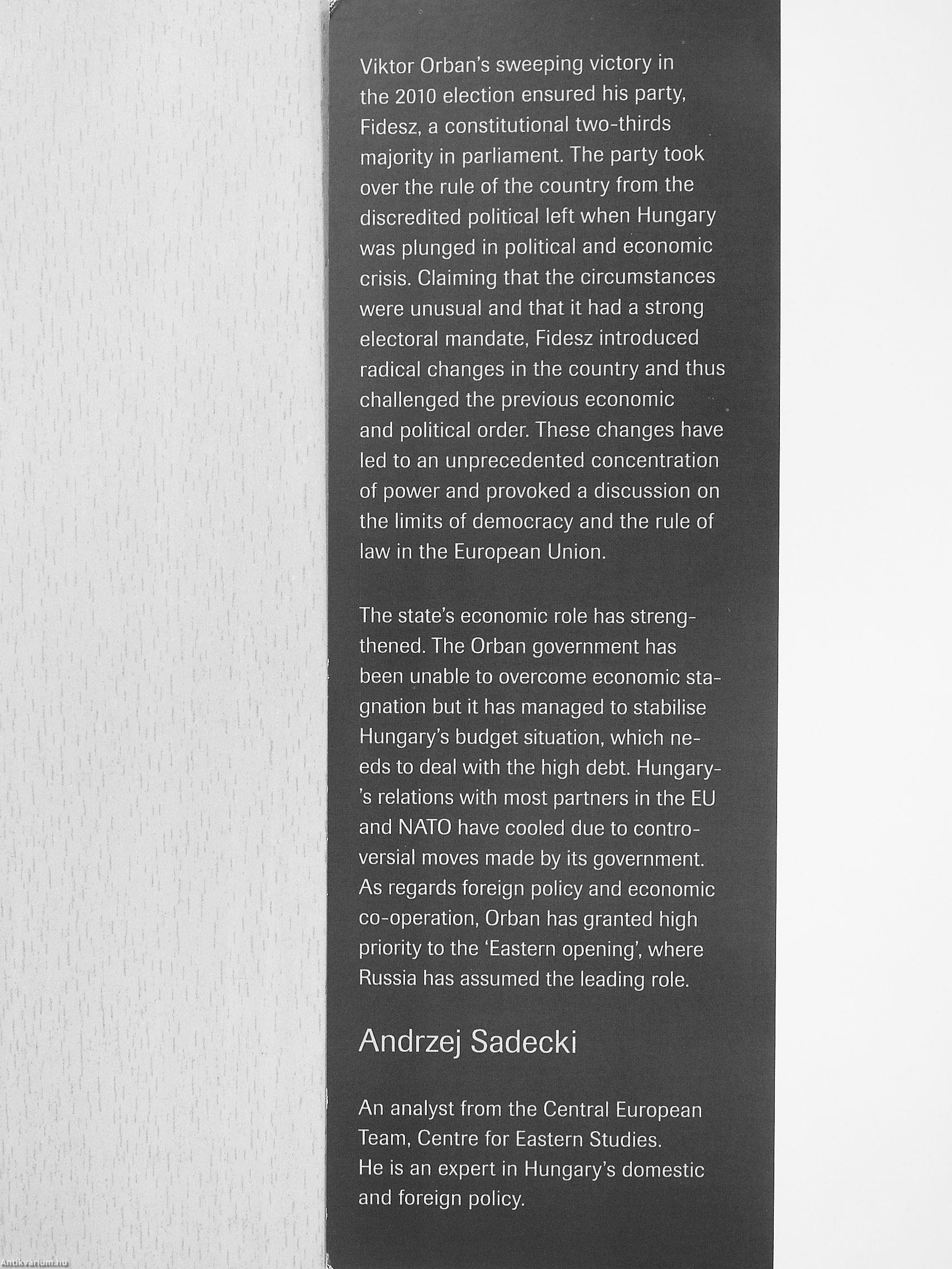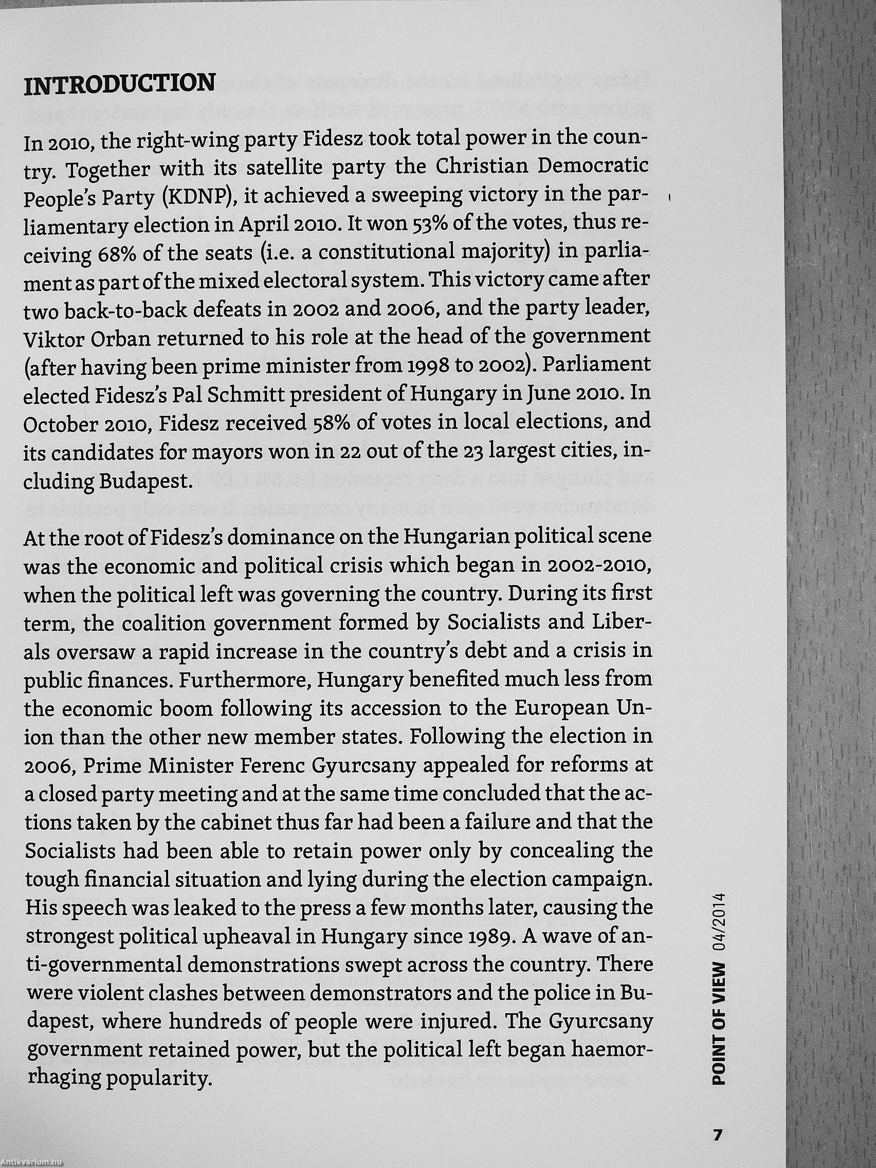 Viktor Orban's sweeping victory in the 2010 election ensured his party, Fidesz, a constitutional two-thirds majority in parliament. The party took over the rule of the country from the discredited political left when Hungary was plunged in political and economic crisis. Claiming that the circumstances were unusual and that it had a strong electoral mandate, Fidesz introduced radical changes in the country and thus challenged the previous economic and political order. These changes have led to an unprecedented concentration of power and provoked a discussion on the limits of democracy and the rule of law in the European Union.
