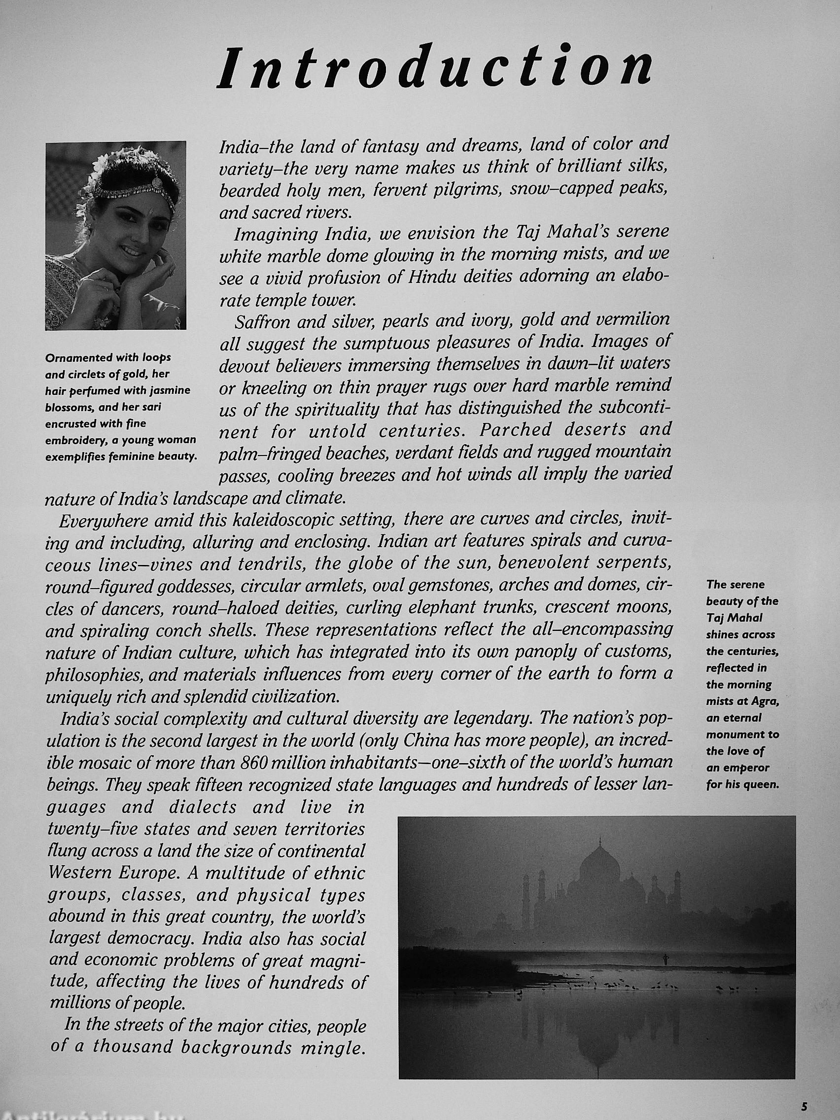 India is a land of fantasy, color, and intrigue. The complex culture of this magnificent 5,000-year-old civilization tias long captivated the imagination. Endless variety characterizes India—where 15 recognized state languages and countless dialects are spoken in diverse regions, each unique in its traditions.