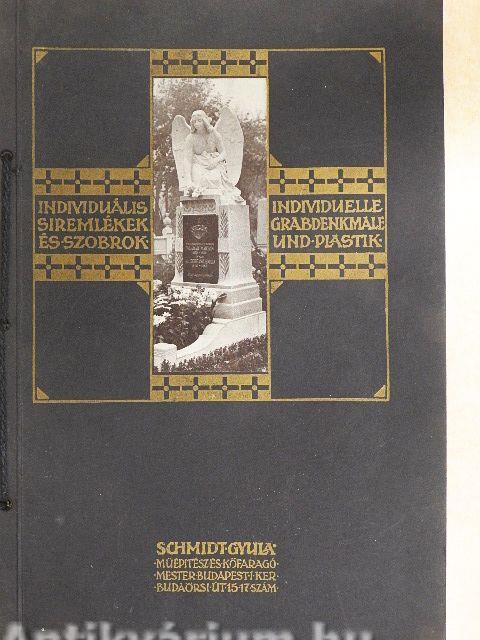 Megjegyzés: Eredeti díszzsinórral átfűzött kiadás. Nyomtatta Hornyánszky Viktor, Budapest. Fekete-fehér egész oldalas képekkel Schmidt Gyula műépítész és kőfaragó mester munkáiról. Összefüggő szövegrészt nem tartalmaz.