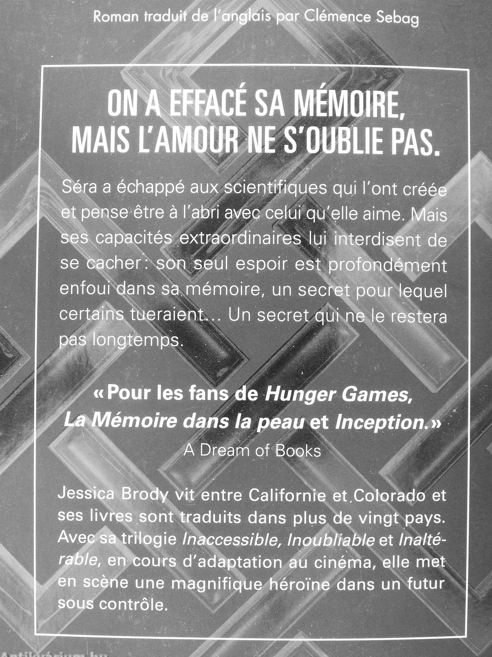 Jessica^ Brody vii entre Californie et.Colorado et ses livres sont^raduits dans plus ae vingt pays. Avec sii trMogie Inaccessible, Inoublîahie et Inalterable, en cours d'adaptation au cinénna,'elle nne|^ en scene une magnifique hérome dans un tutu r sous contrôle. -- \