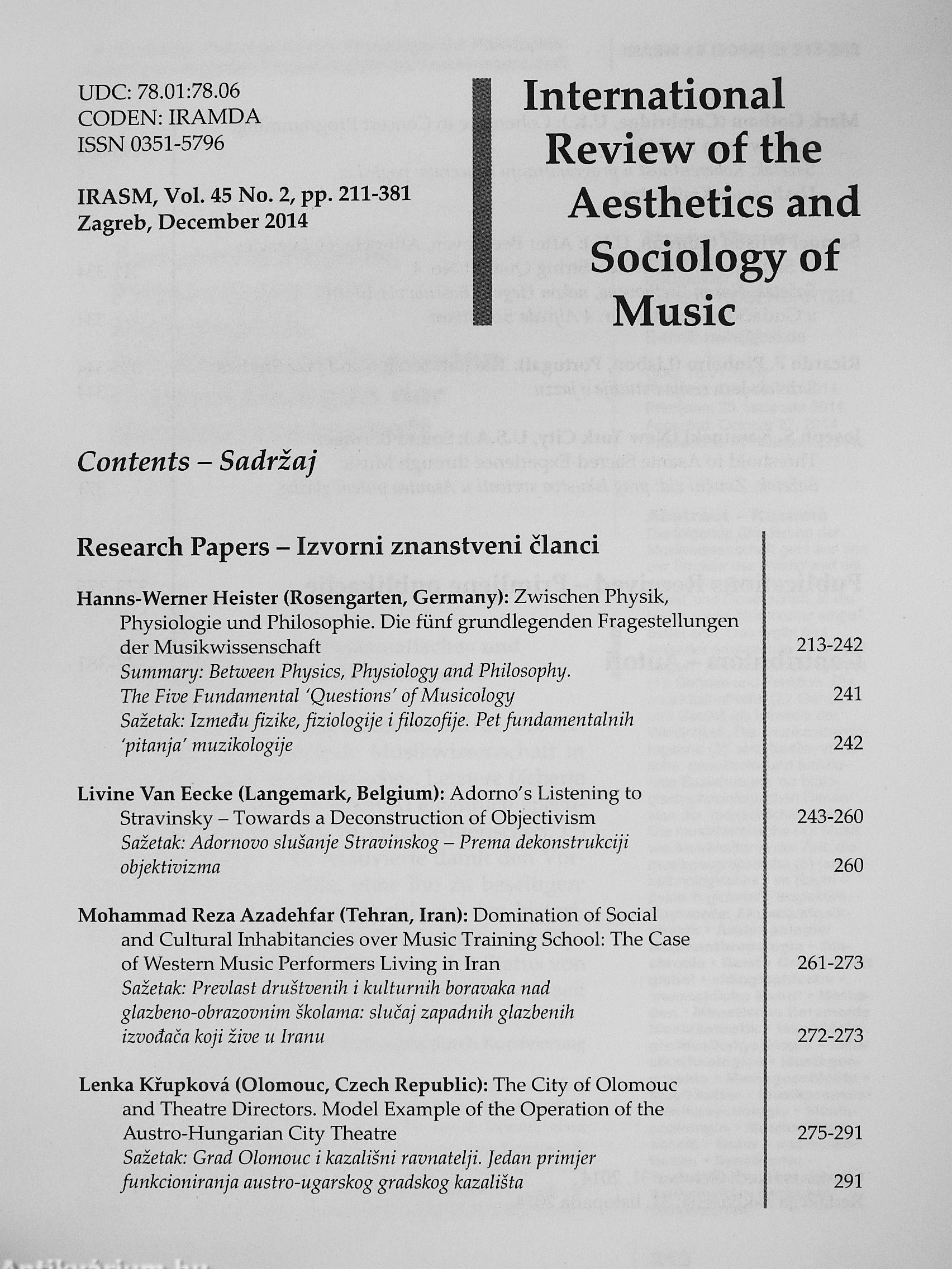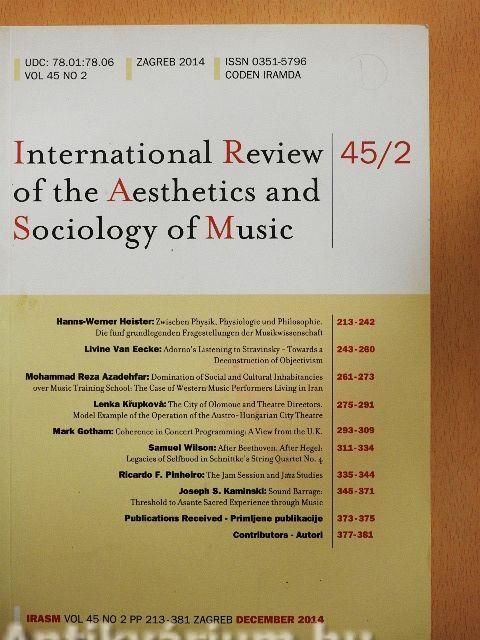| Sorozatcím: | International Review of the Aesthetics and Sociology of Music |