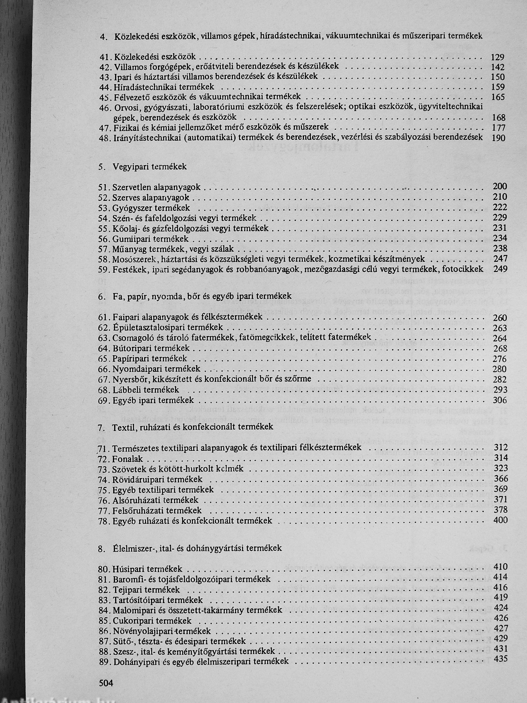 | Megjegyzés: | Két mű egy kötetben. Változatlan utánnyomás. Az Ipari termékek jegyzéke 3., bővített kiadás. A Mezőgazdasági és erdészeti termékek jegyzéke 2. bővített kiadás. |
