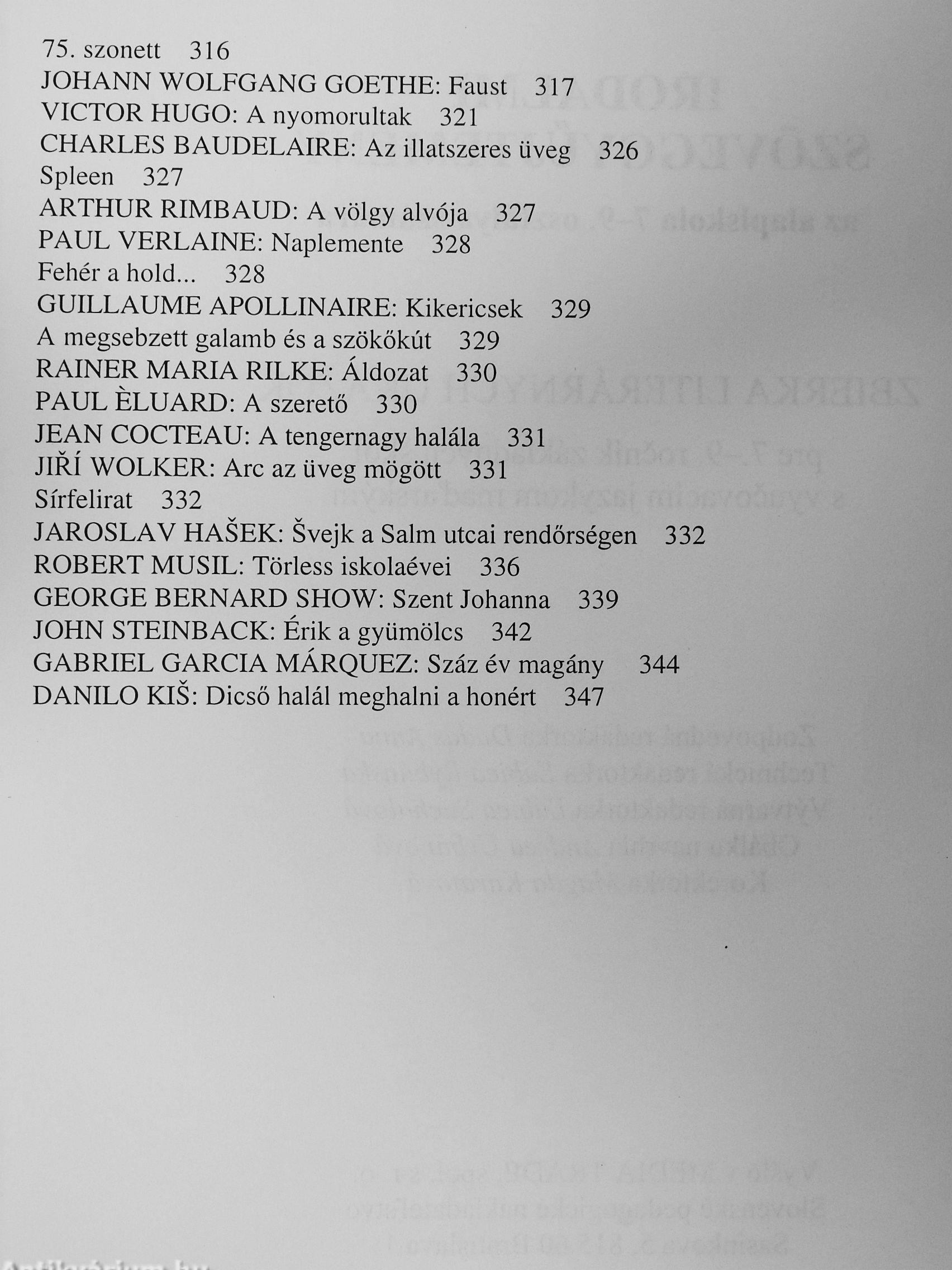Irodalmi szöveggyűjtemény az alapiskola 7-9. osztálya számára Irodalmi szöveggyűjtemény az alapiskola 7-9. osztálya számára Irodalmi szöveggyűjtemény az alapiskola 7-9. osztálya számára Irodalmi szöveggyűjtemény az alapiskola 7-9. osztálya számára