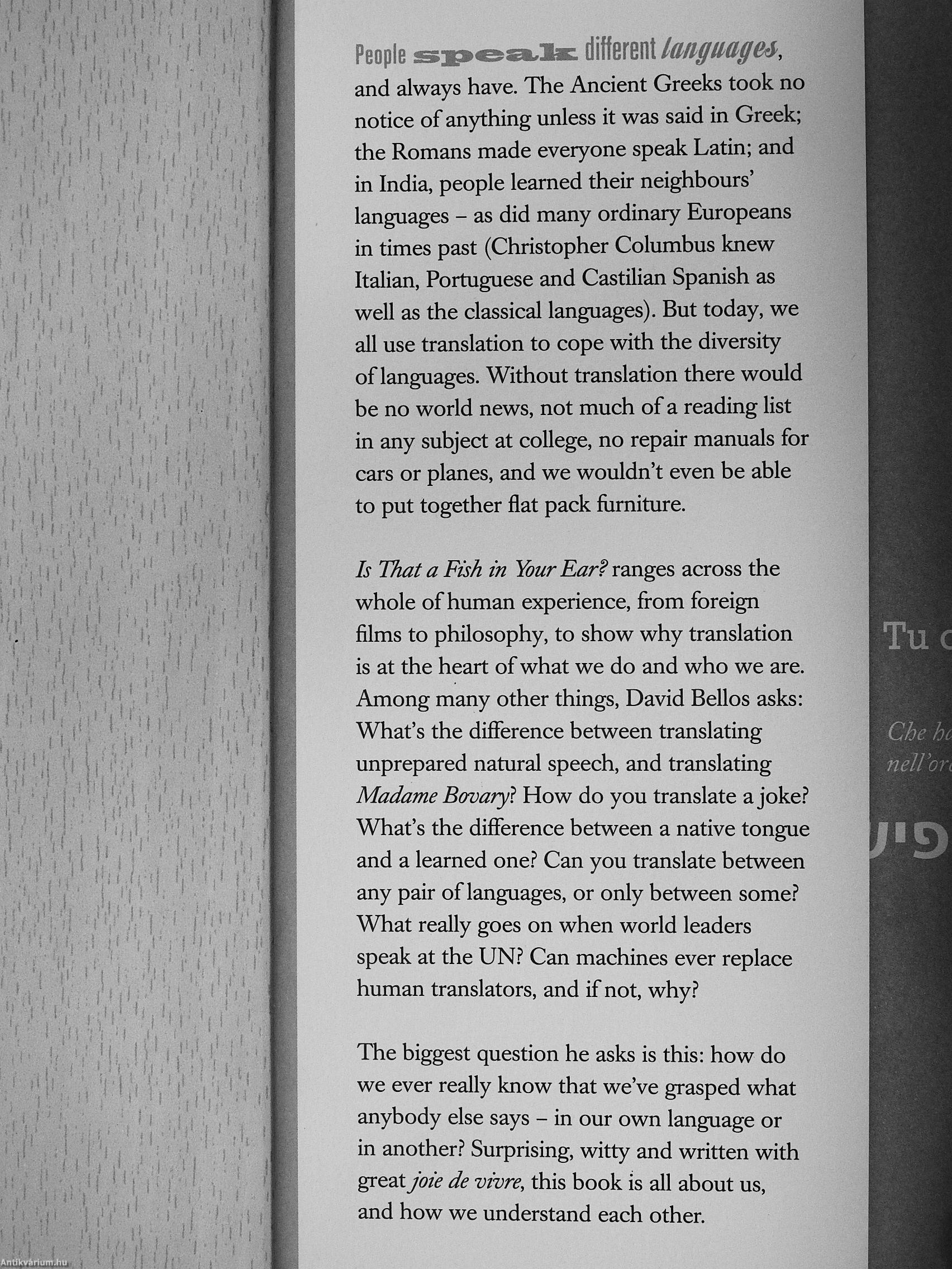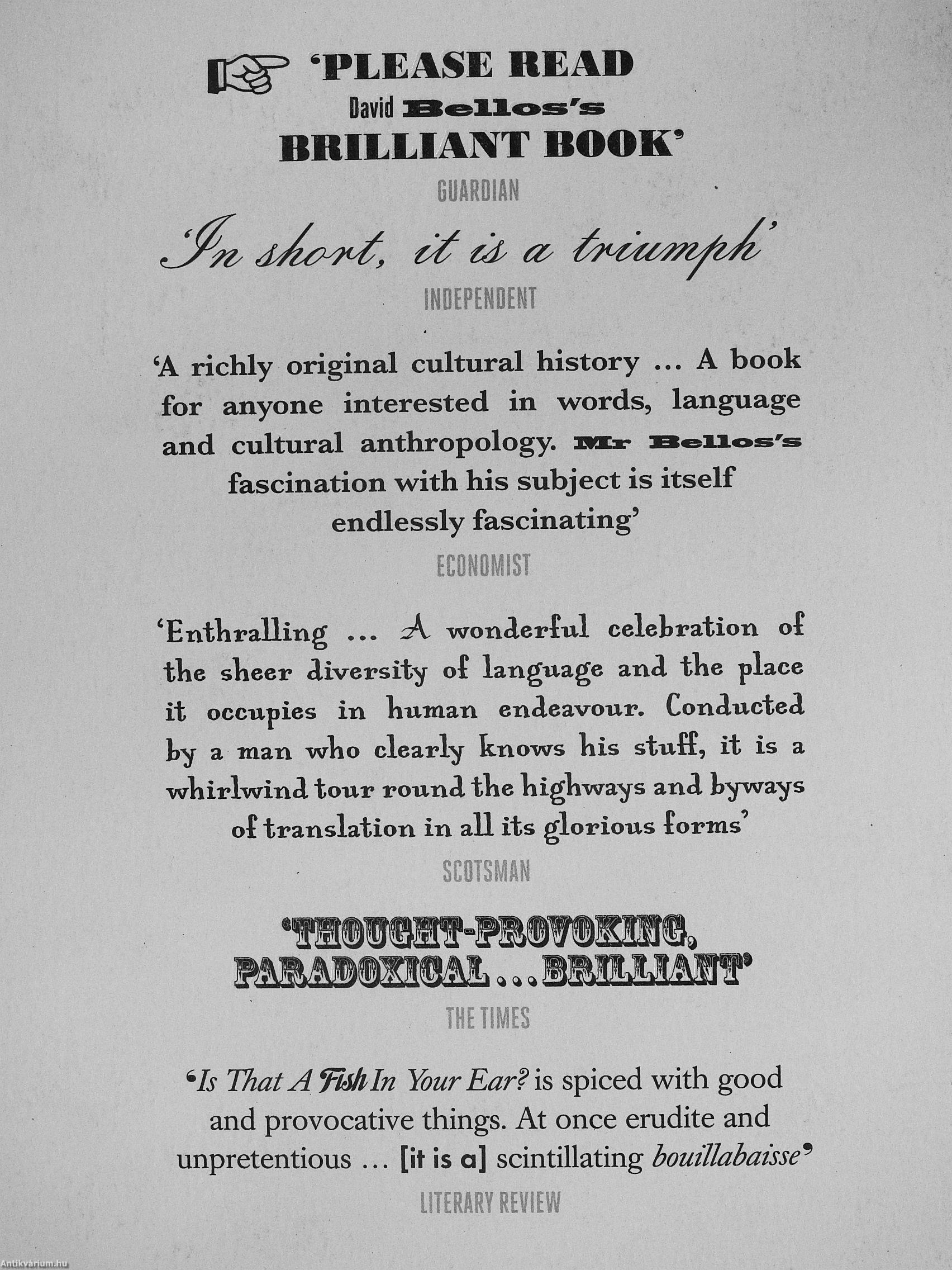 'Enthralling A, wonderful celetration of the sheer diversity of language and the place it occupies in human endeavour. Conducted ty a man who clearly knows his stuff, it is a whirlwind tour round the highways and fcyways of translation in all its glorious forms'
