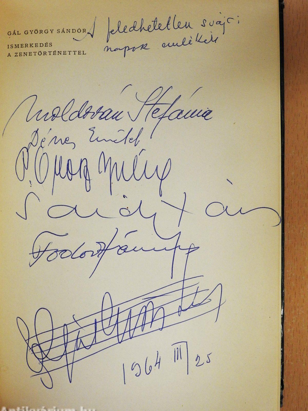 Megjegyzés: Gál György Sándor szerző, valamint Moldován Stefánia és P. Orosz Júlia operaénekesnők, Sárdy János és Fodor János operaénekesek és Dénes Erzsébet zongorista által dedikált példány. Fekete-fehér illusztrációkkal.