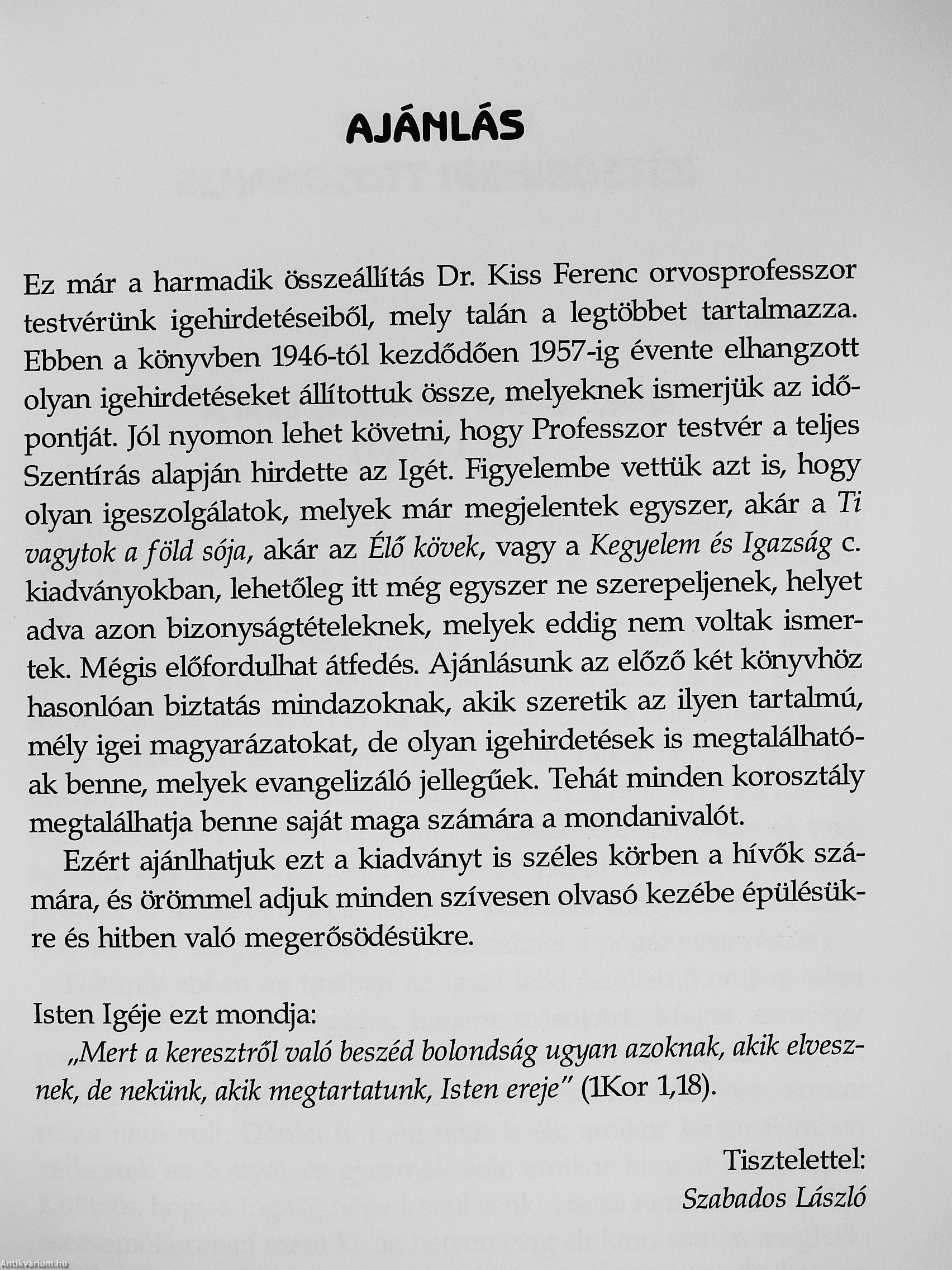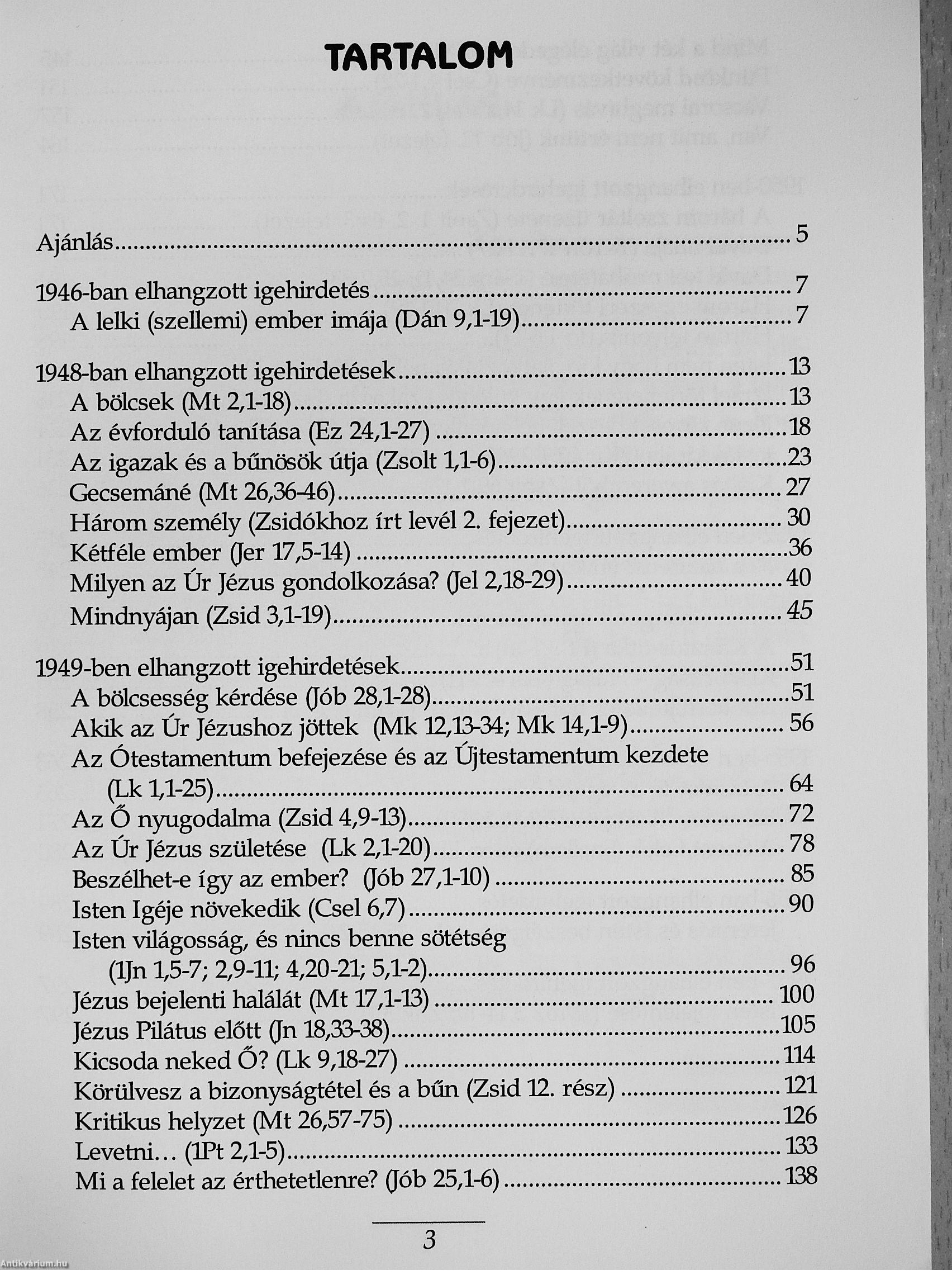 Ebben a köteteben az 1946-1957 közötti időszakban elhangzott igehirdetések, tanítások, bibliamagyarázatok olvashatók.