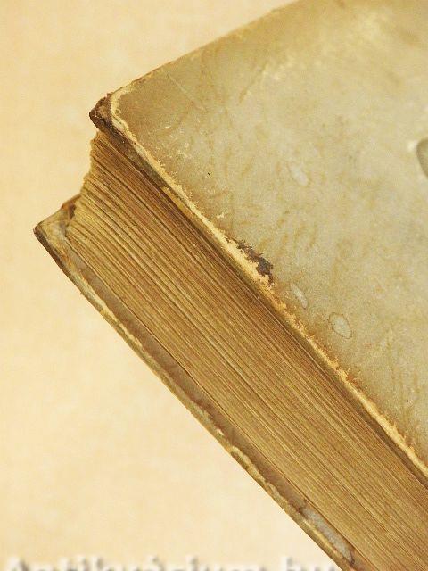 A gerinc vászonnal pótolt. A borító szélei kopottak. Belülről megerősített példány. Az előlapon ajándékozási bejegyzés található.
