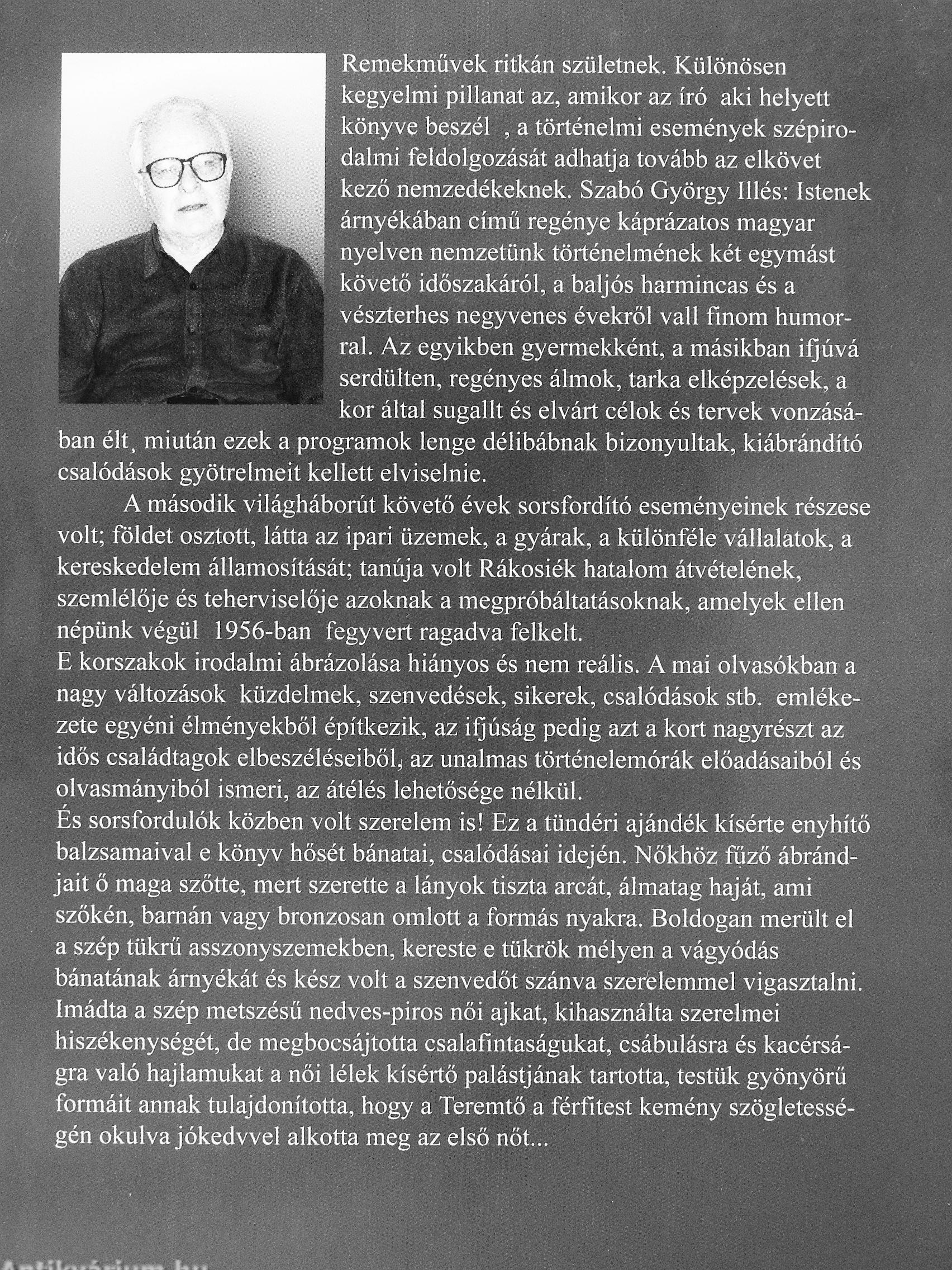 kegyelmi pillanat az, amikor az író aki helyett könyve beszél , a történelmi események szépiro-^^^HH^^fl^^^l dalmi feldolgozását adhatja tovább az elkövet ^^^KtBmm 'W^^^ kezö nemzedékeknek. Szabó György Illés: Istenek