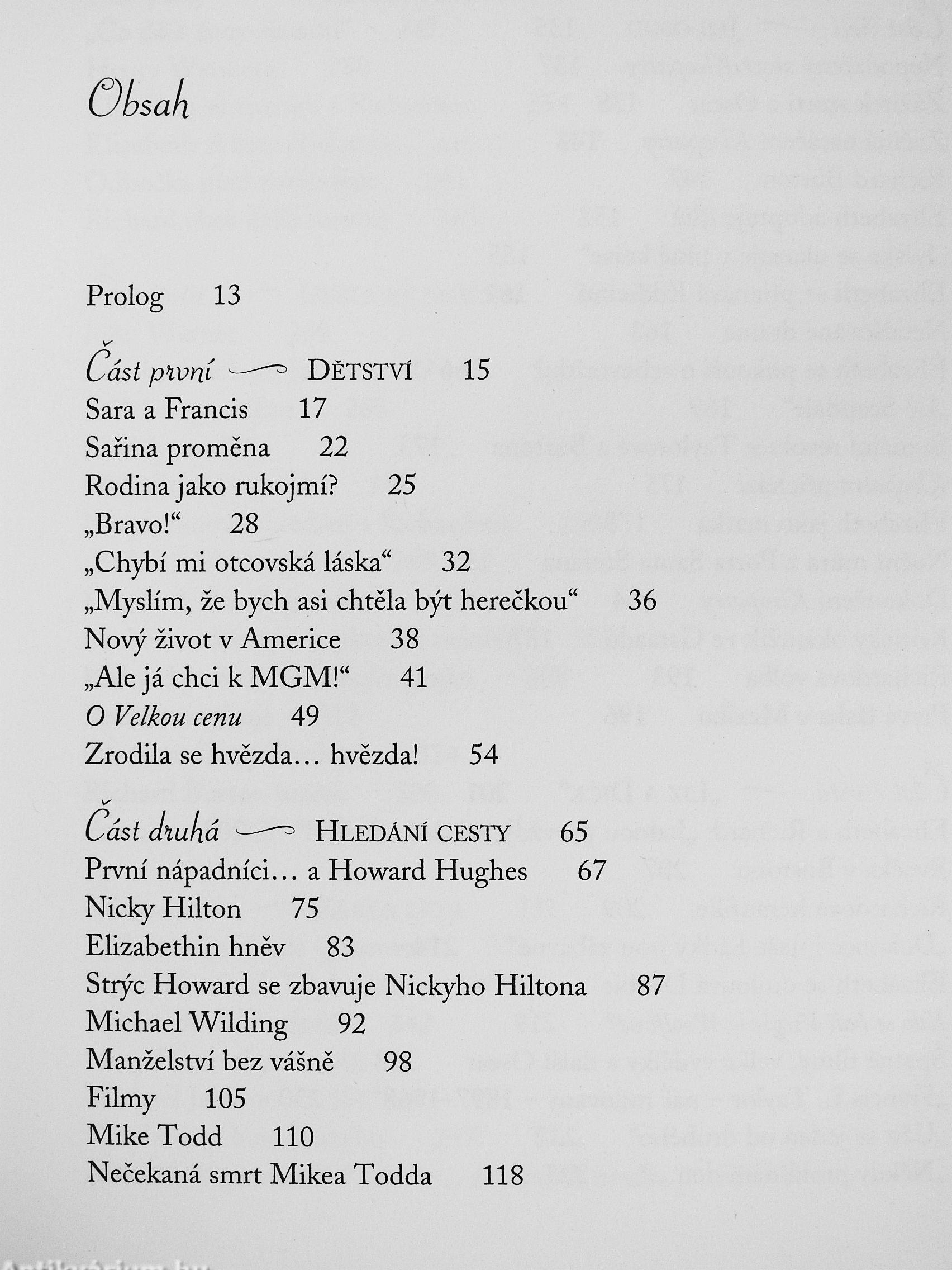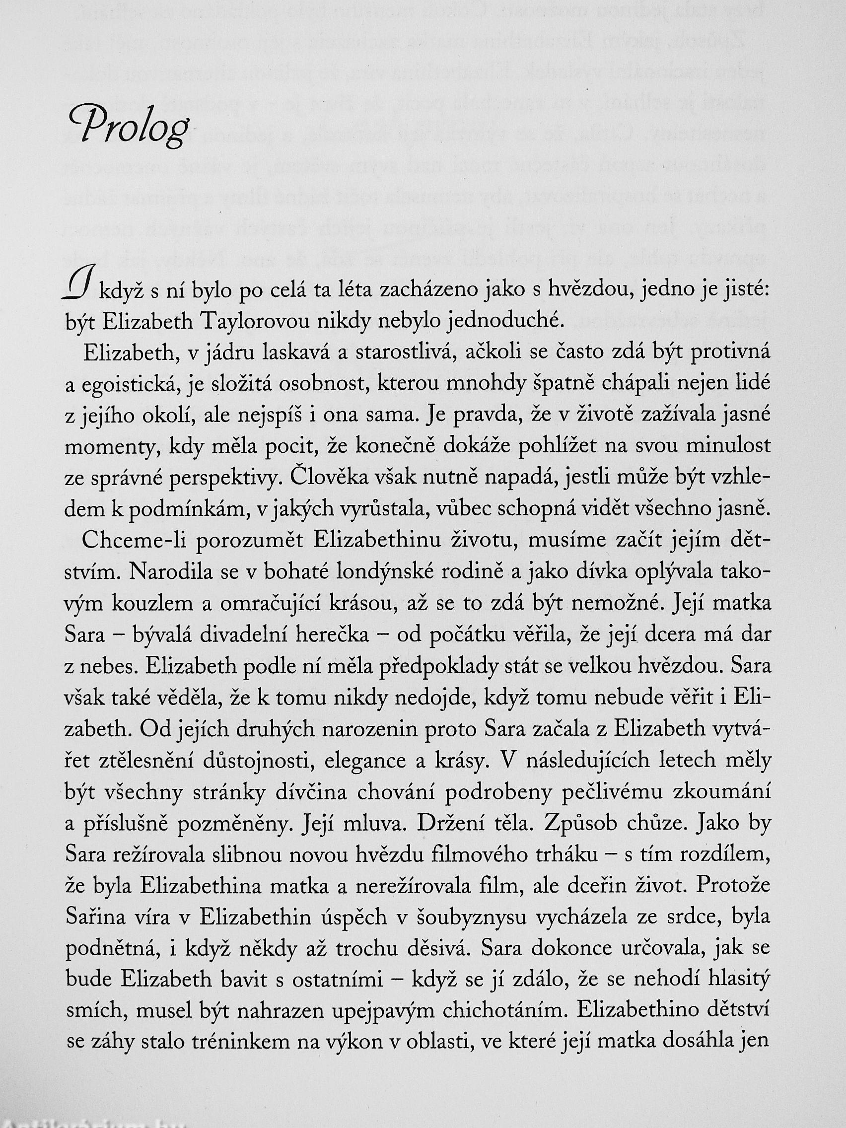 Je soucástí nasich zivotu vice nez sest deseti-leti. Americká ikona Elizabeth Taylorová se stala slavnou a známou uz jako dite. Zkuseny zivotopisec J. RandyTaraborrelli hledá za bul-várni verzi Elizabethina zivota skutecného clovëka - a pátrájak se z dëtské hvëzdy stala úspesná zena.