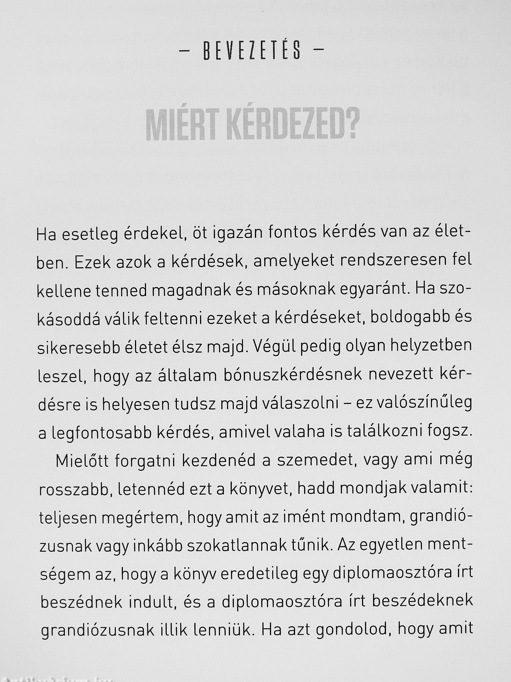 Legyünk akár a tárgyaló-, akár az osztályteremben, túlságosan Is sok időt és energiát feosérlünk el lényegtelen dolgokra. Az igazság az, hogy a kérdések legalább olyan fontosak, mint a válaszok, sőt, sokszor fontosabbak. Ha például rossz kérdést teszel feUarantált, hogy rossz választ fogsz kapni. A jó kérdés azonban jó válaszra késztet, és ennek során mélyebb és jelentőségteljesebb kapcsolatra ösztönöz. A jó kérdésfeltevés arra inspirál, hogy túllépjünk azon, amit gondolni vélünk, as felfeitezzük a bonyolultat, az ismeretlent, a kínosat, sőt, akár a kellemetlent.