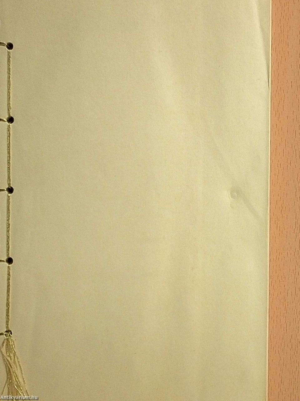 | Megjegyzés: | Eredeti aranyozott védőmappában. Díszzsinórral átfűzött kiadás. Duplaívű lapokkal. |
