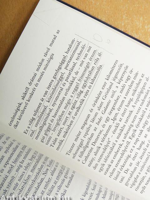 "Azt reméltem, hogy innen majd kívülről látom Európát, de innen sem lehet az idegen szemével nézni. Európa ugyanis egyszerűen volt-nincs, eltűnik, mihelyt hátat fordítunk neki. Vagyis innen nem lehet megítélni. A bírálgatás nagyon jól megy magában Európában, és tényleg, mi is van ott még kivetnivaló, amit már nem vetettek ki ezerszer? Lépjünk be inkább Amerika fikciójába, Amerikába mint fikcióba. Hiszen Amerika mint fikció uralja a világot. Ha Amerika minden részlete jelentéktelen lenne is, Amerika olyasmi, ami túllép rajtunk."