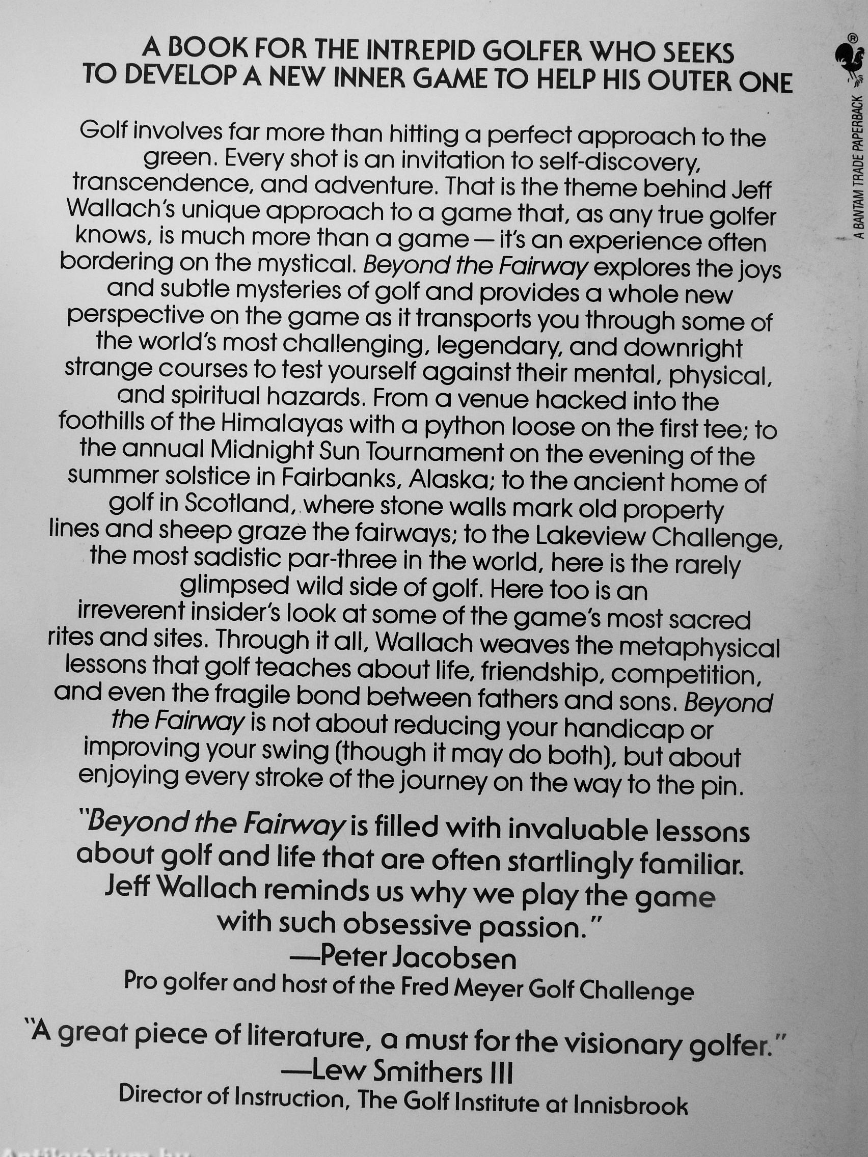 "Beyond the Fairway \s filled with invaluable lessons about golf and life that ore often stortlingly familiar. Jeff Wallach reminds us why we ploy the game with such obsessive passion."