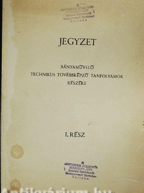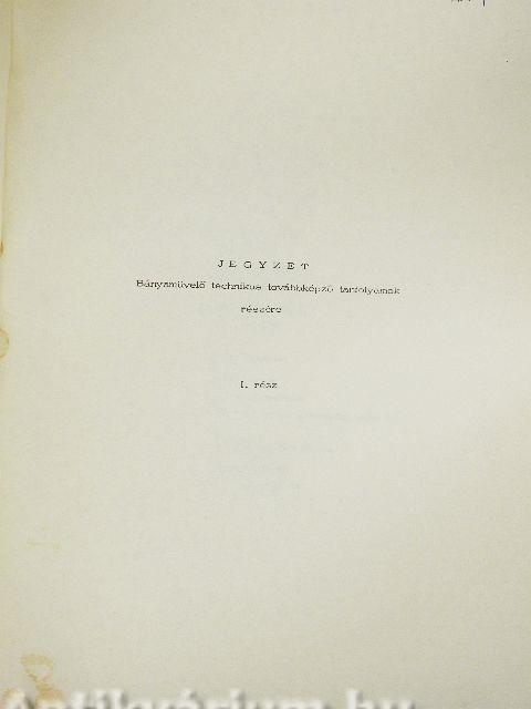 Jegyzet bányamüvelő technikus továbbképző tanfolyamok részére I.