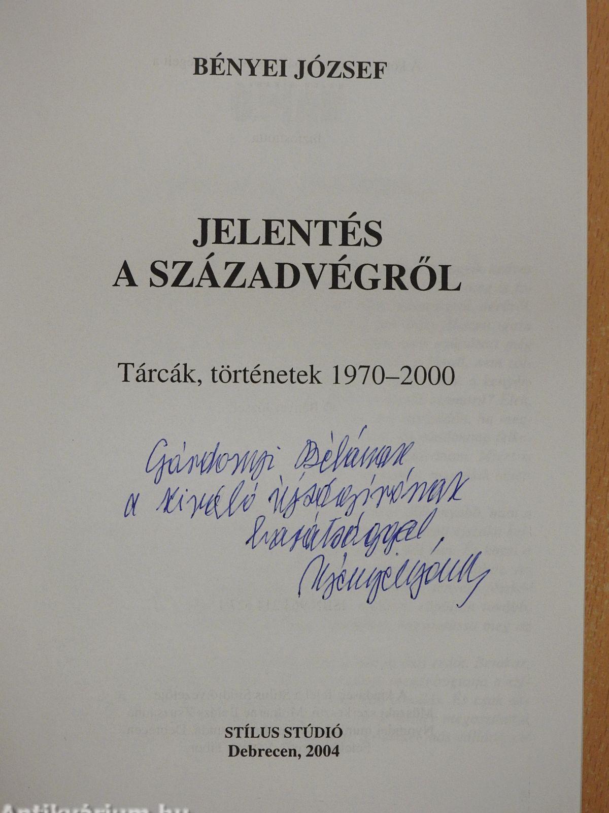 | Megjegyzés: | Bényei József szerző által dedikált példány. |