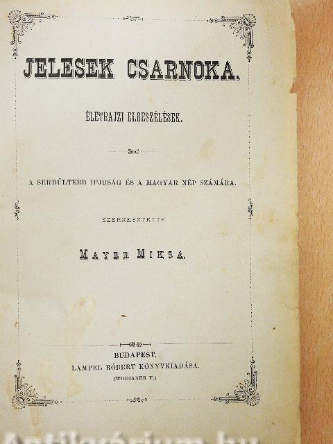 Fölvettem könyvembe külföldi és hazai jeles egyéneket. Hogy nem csupán az utóbbiakból telt ki, annak oka azon óriási nehézségekben rejlik, melyekkel nálunk a megfelelő adatok gyűjtése jár. Hunyadi János, Széchenyi István, Deák Ferencz, br. Eötvös József s más elsö rangú jelesünk életét pedig azért nem ismertetem, mert azokról népies modorban irt életrajzok már kiadattak, melyek a magyar ifjúságnak is jó lélekkel ajánlhatók.