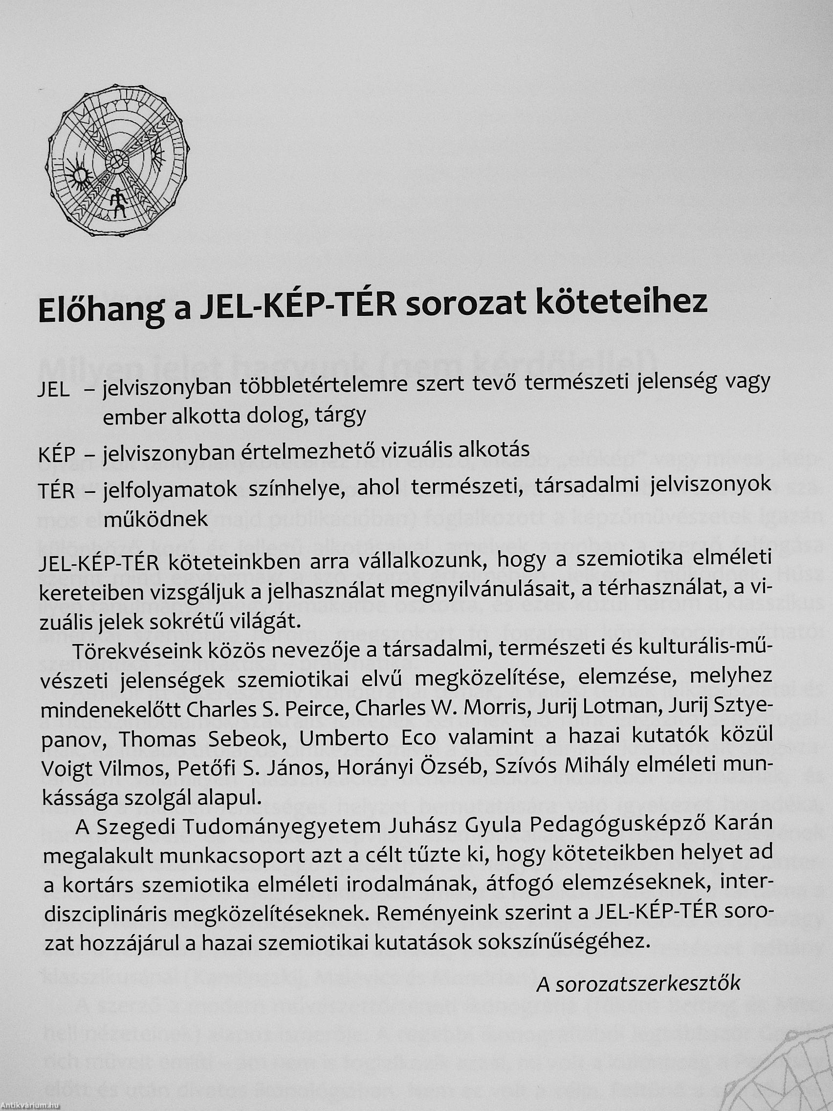 „ az ikonográfiái leírások, a minél pontosabb szemantikai meghatározások kiindulópontul szolgálnak, amelyre az átfogóbb elemzések épülnek. A szemiotika mint általnos jeltudomány a jelalkalmazási formákat vizsgálja, beleértve ennek kreatív folyamatát, a jelalkotást is, amelyet valamennyi, általam bemutatott alkotás és rítus tökéletesen példáz. Szemiotikai tekintetben a műalkotások a legösszetettebb és legbonyolultabb jelalakzatok, az emberi jelalkotás legkiemelkedőbb eredményei "