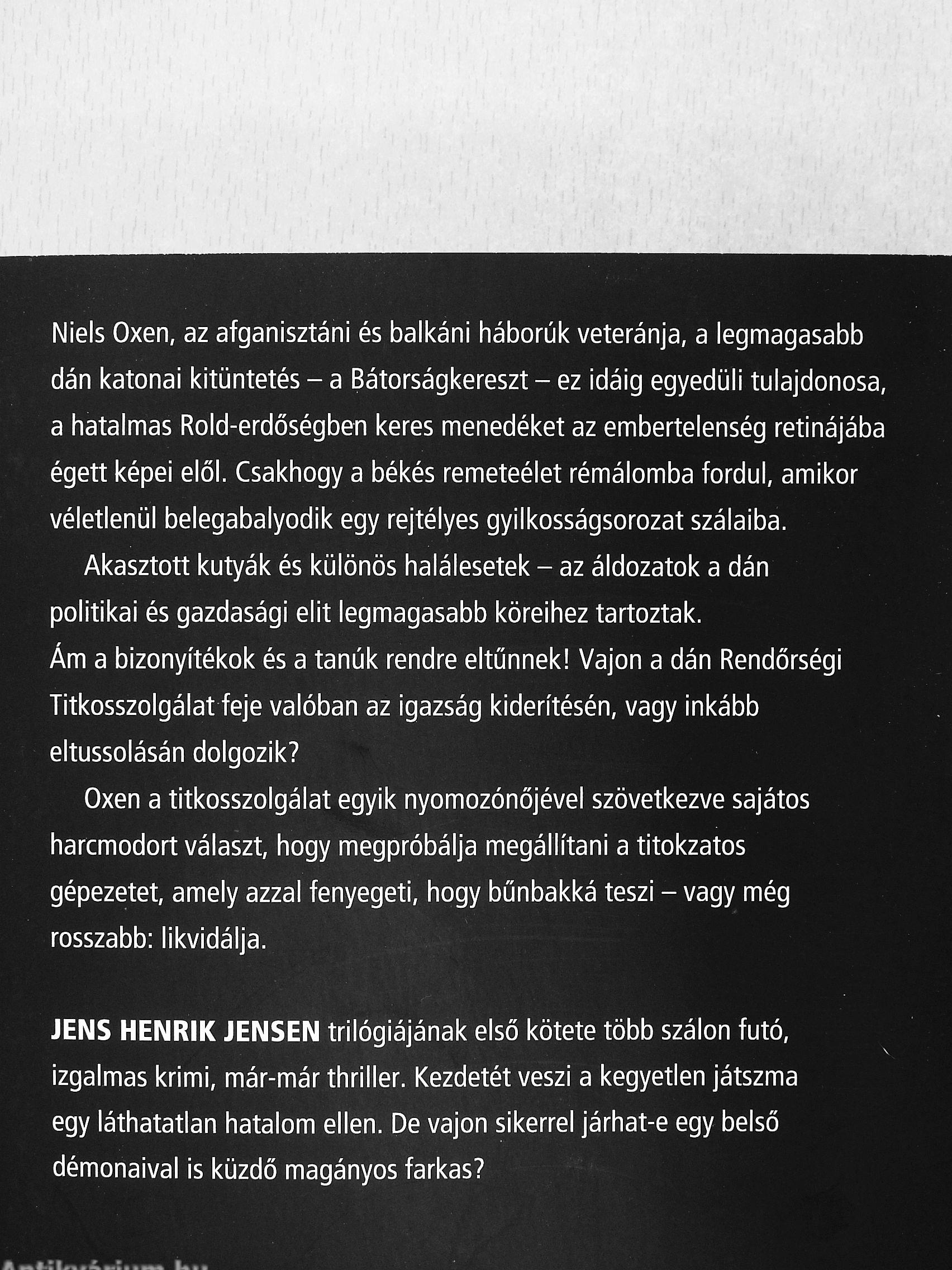 JENS HENRIK JENSEN trilógiájának első kötete több szálon futó, izgalmas krimi, már-már thriller. Kezdetét veszi a kegyetlen játszma egy láthatatlan hatalom ellen. De vajon sikerrel járhat-e egy belső démonaival is küzdő magányos farkas?