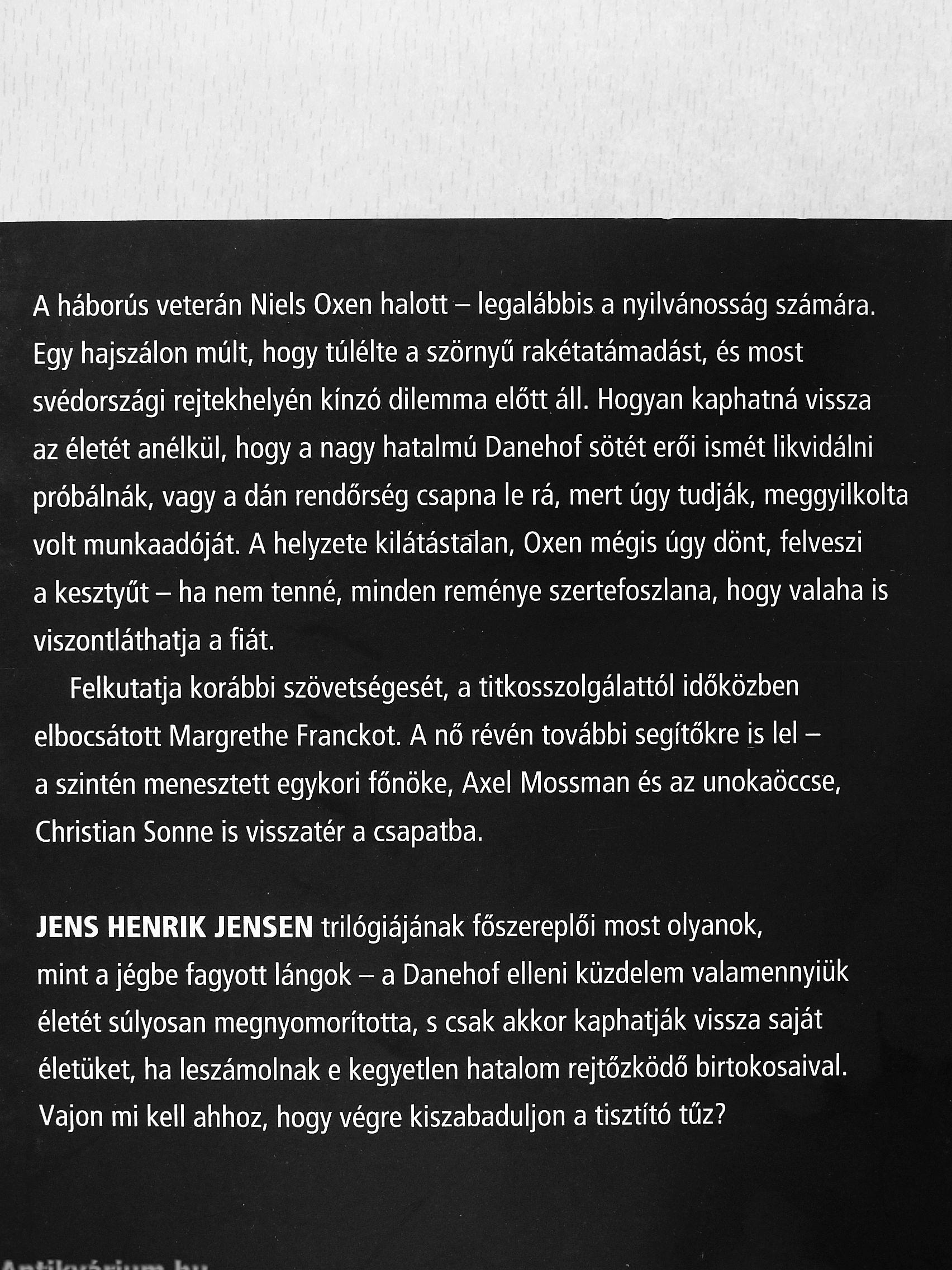 JENS HENRIK JENSEN trilógiájának főszereplői most olyanok, mint a jégbe fagyott lángok - a Danehof elleni küzdelem valamennyiük életét súlyosan megnyomorította, s csak akkor kaphatják vissza saját életüket ha leszámolnak e kegyetlen hatalom rejtőzködő birtokosaival. Vajon mi kell ahhoz, hogy végre kiszabaduljon a tisztító tűz?