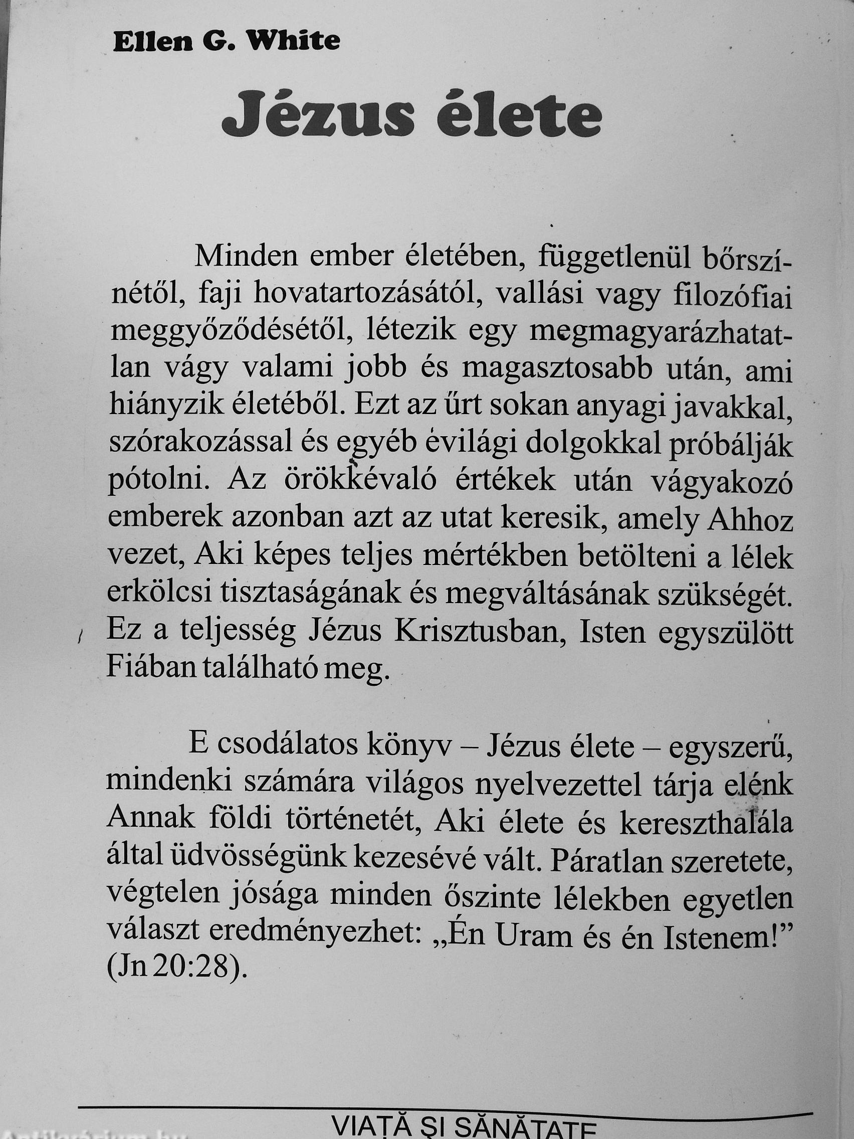 E csodálatos könyv - Jézus élete - egyszerű, mindenki számára világos nyelvezettel táija elénk Annak földi történetét, Aki élete és kereszthafála által üdvösségünk kezesévé vált. Páratlan szeretete, végtelen jósága minden őszinte lélekben egyetlen választ eredményezhet: „Én Uram és én Istenem!" (Jn 20:28).