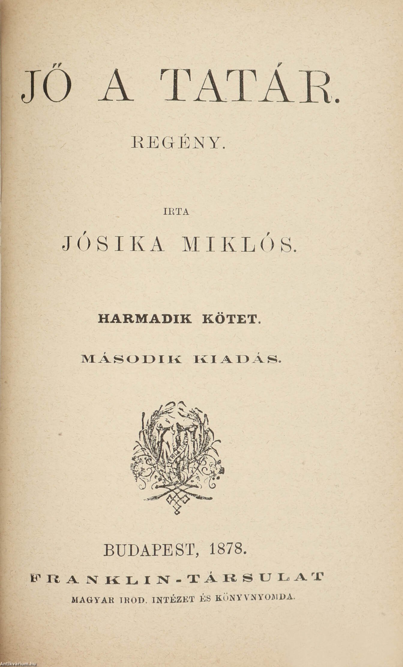 | Megjegyzés: | Második kiadás. Aranyozott, színezett, kiadói egészvászon Gottermayer kötésben. Három rész egy kötetben. Nyomatta a Franklin-Társulat nyomdája. |