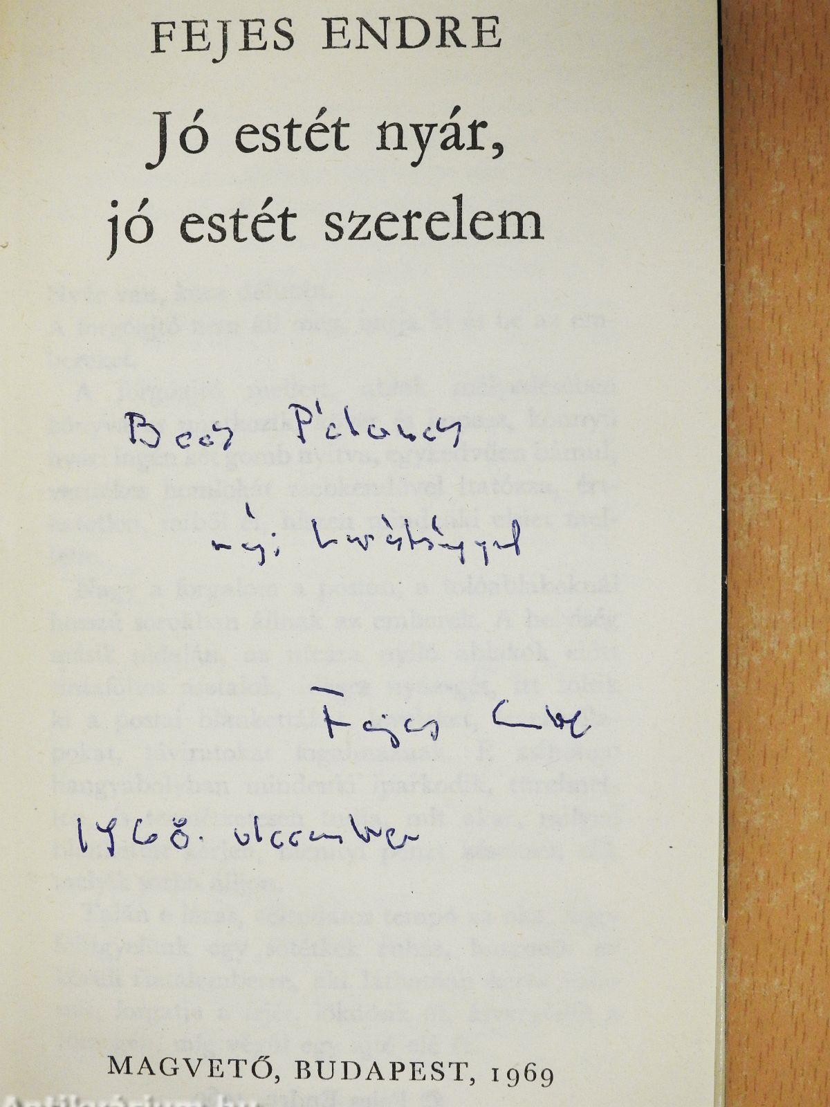 | Megjegyzés: | Fejes Endre szerző által dedikált példány. |