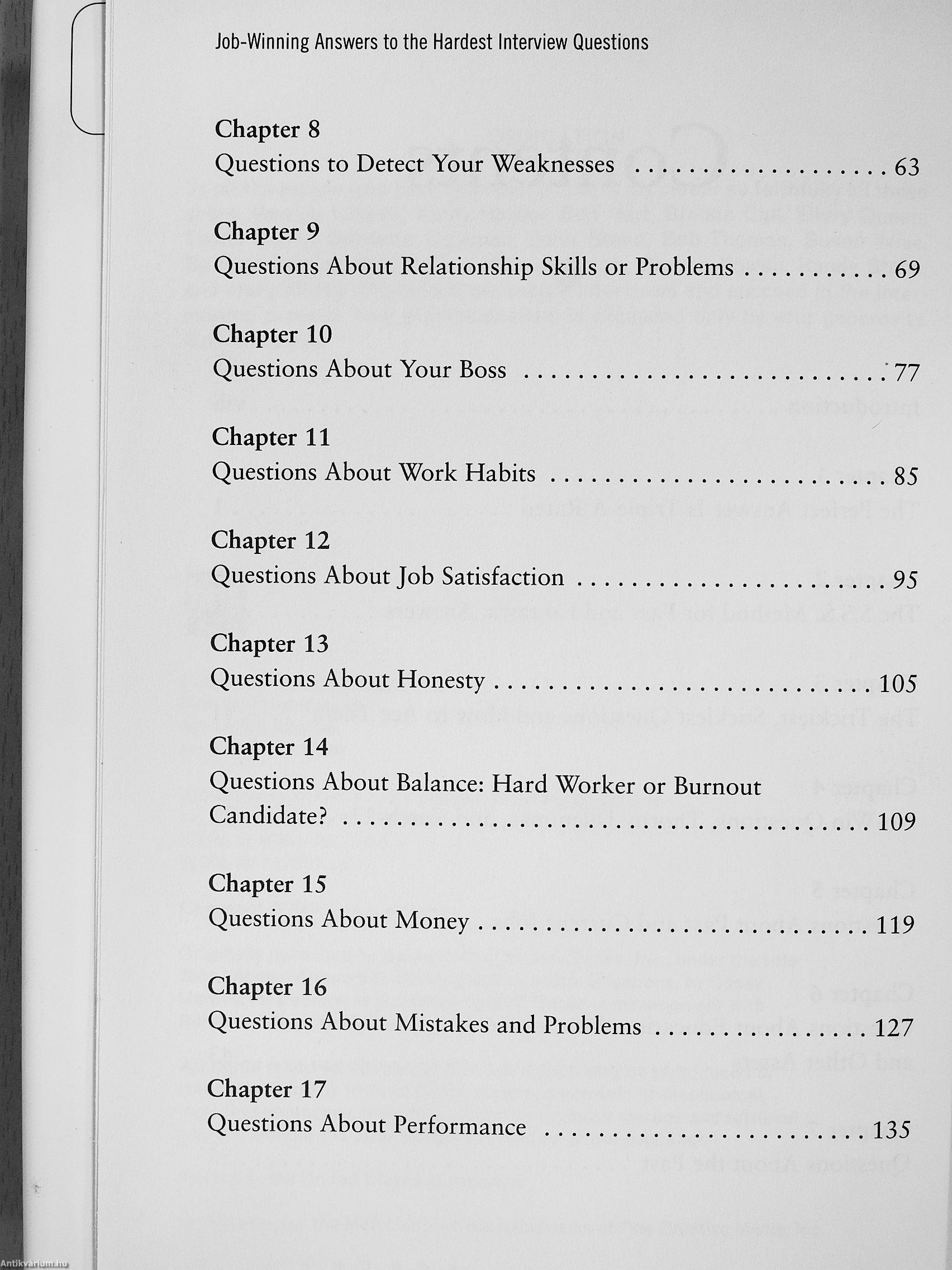 You'll discover how to apply these techniques to more than one hundred of the trickiest, stickiest questions, including seeming no-win beauties such as, "What's your greatest weakness?" and "Are you better at working within a budget or doing quality work?"