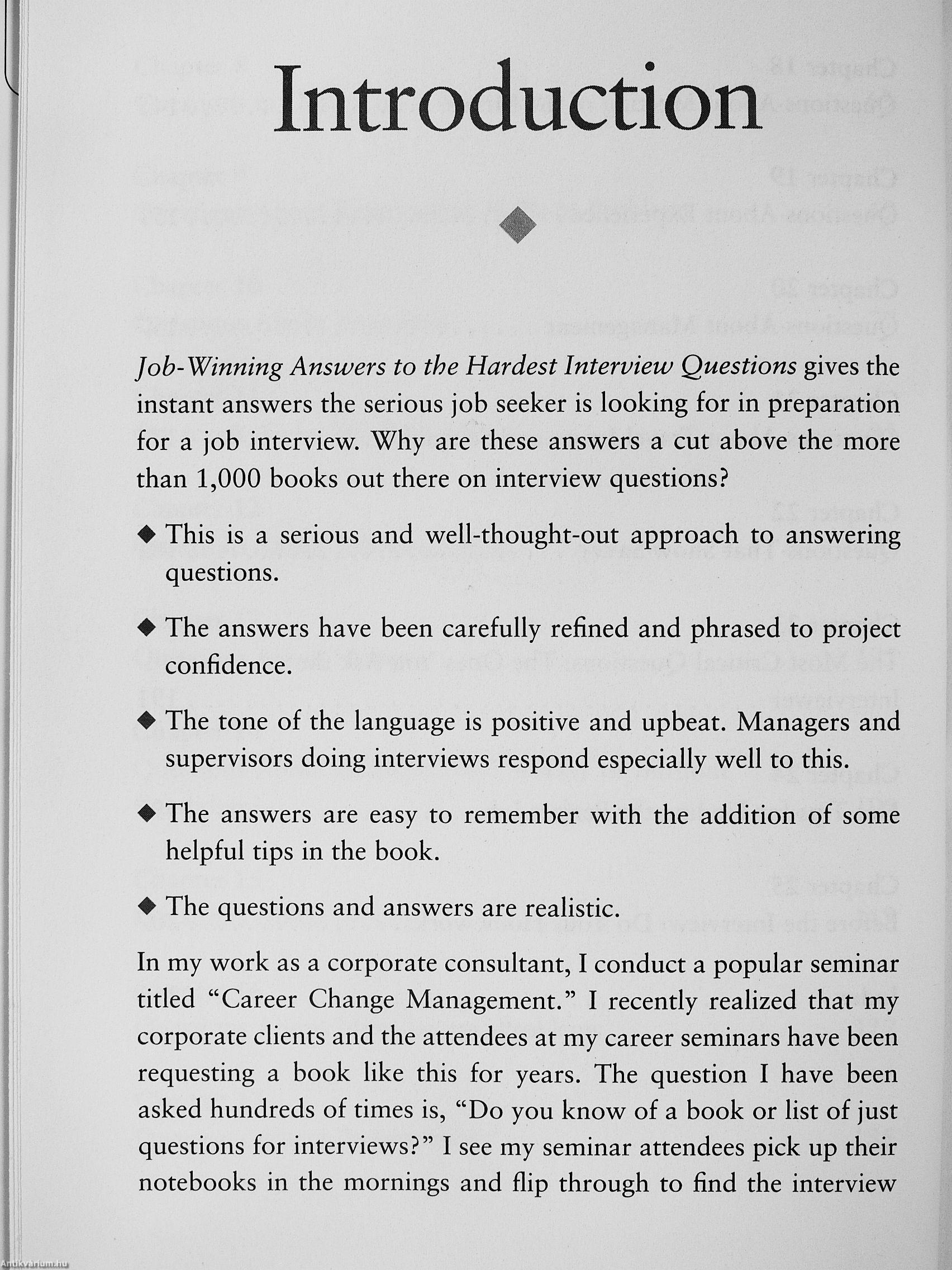 With the advice you'll find in Job-Winning Answers to the Hardest Interview Questions, your interview answers will reflect your personality and unique style, and will distinguish you from everyone else by creating a lasting, favorable impression.