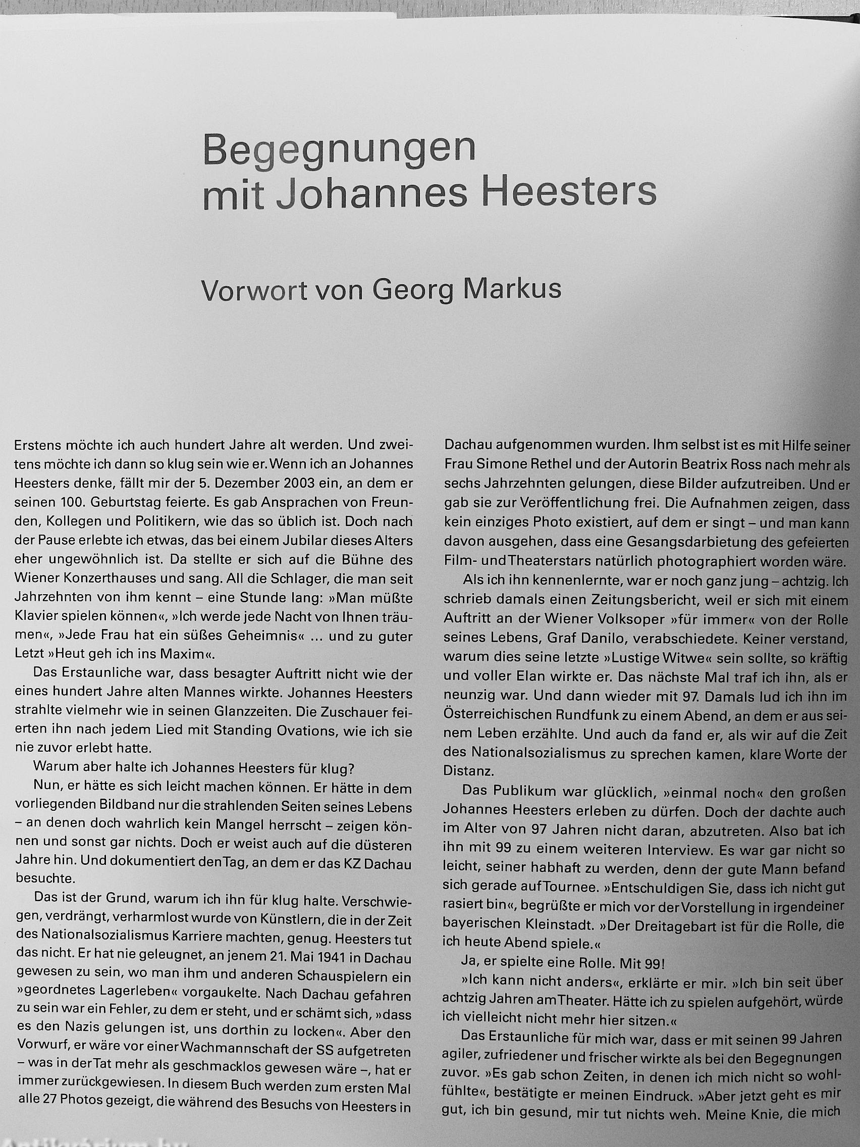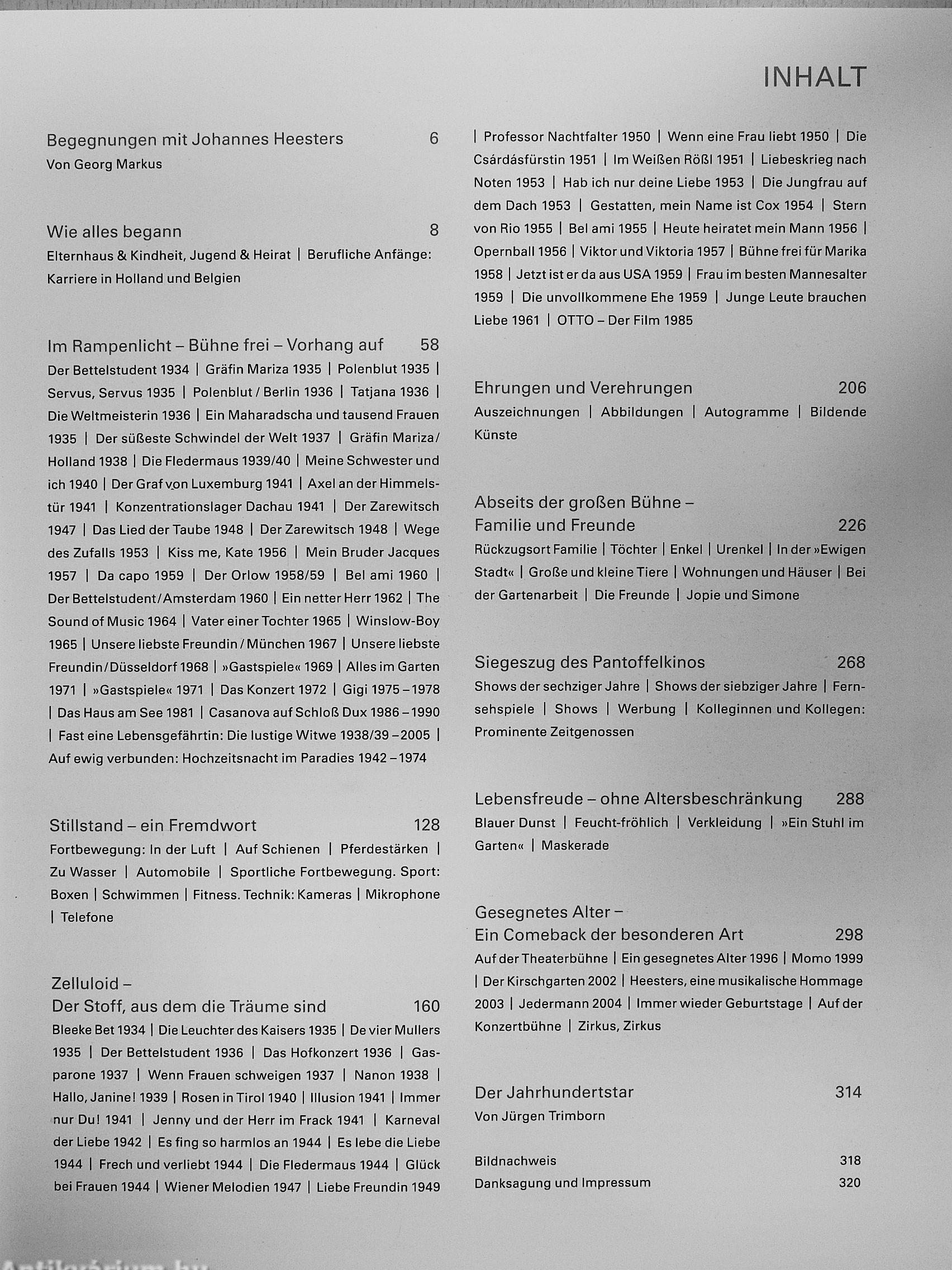 Dieser umfassende Bildband mit weit mehr als 1.500 Abbildungen wurde von Simone Rethel-Heesters, der Ehefrau von Johannes Heesters, herausgegeben, die über viele Monate hinweg in zahllosen Fotoalben und Archiven recherchiert hat.
