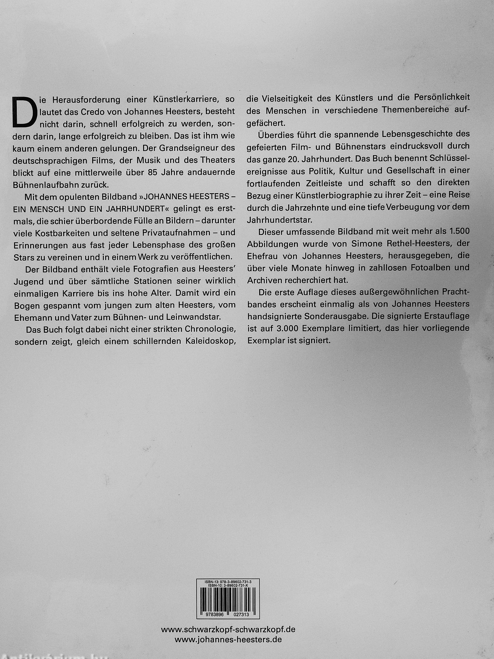Die erste Auflage dieses außergewöhnlichen Prachtbandes erscheint einmalig als von Johannes Heesters handsignierte Sonderausgabe. Die signierte Erstauflage ist auf 3.000 Exemplare limitiert, das hier vorliegende Exemplar ist signiert.