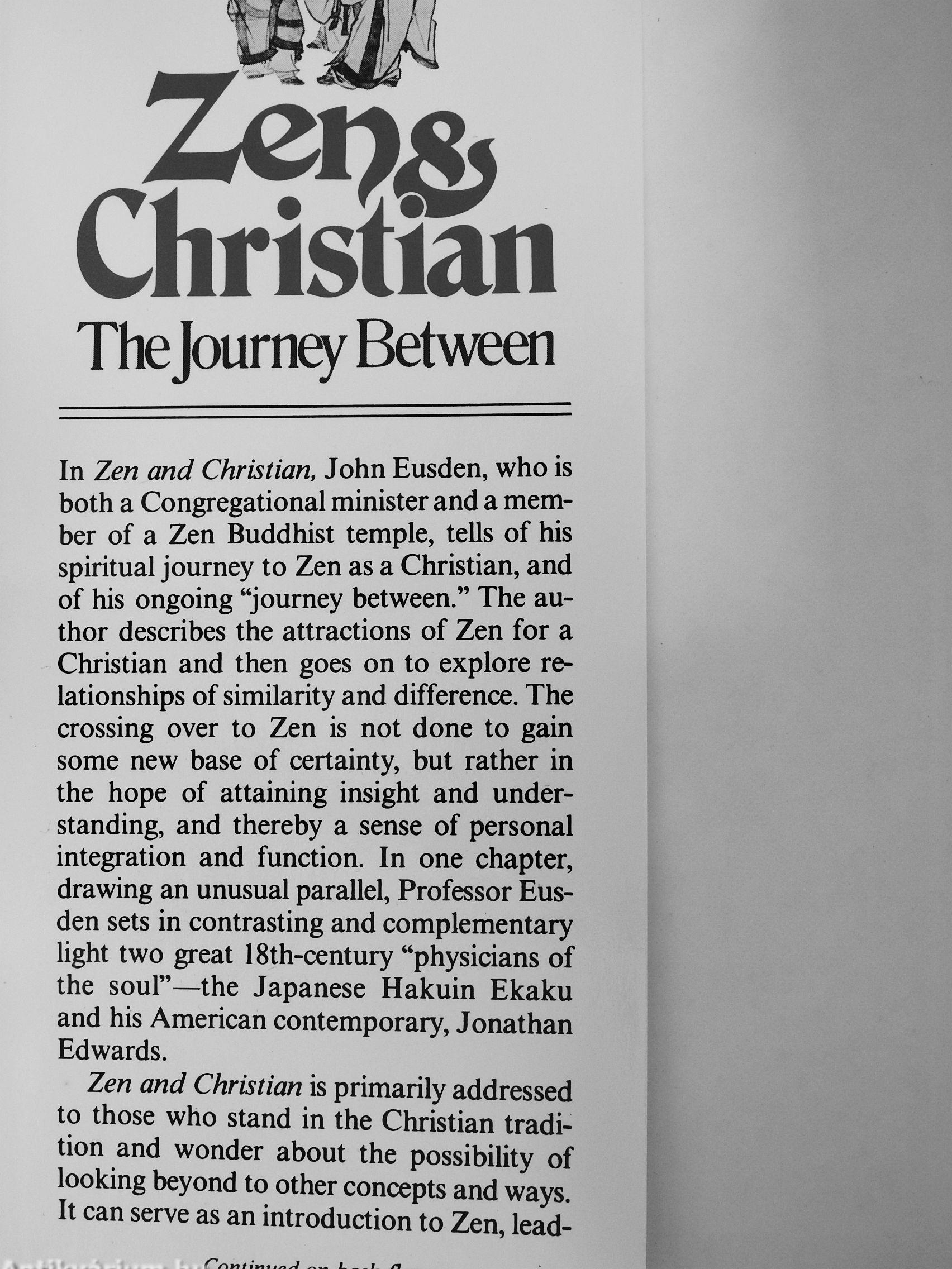 In Zen and Christian, John Eusden, who is both a Congregational minister and a member of a Zen Buddhist temple, tells of his spiritual journey to Zen as a Christian, and of his ongoing "journey between." The author describes the attractions of Zen for a Christian and then goes on to explore relationships of similarity and difference. The crossing over to Zen is not done to gain some new base of certainty, but rather in the hope of attaining insight and understanding, and thereby a sense of personal integration and function. In one chapter, drawing an unusual parallel, Professor Eusden sets in contrasting and complementary light two great 18th-century "physicians of the soul"—the Japanese Hakuin Ekaku and his American contemporary, Jonathan Edwards.