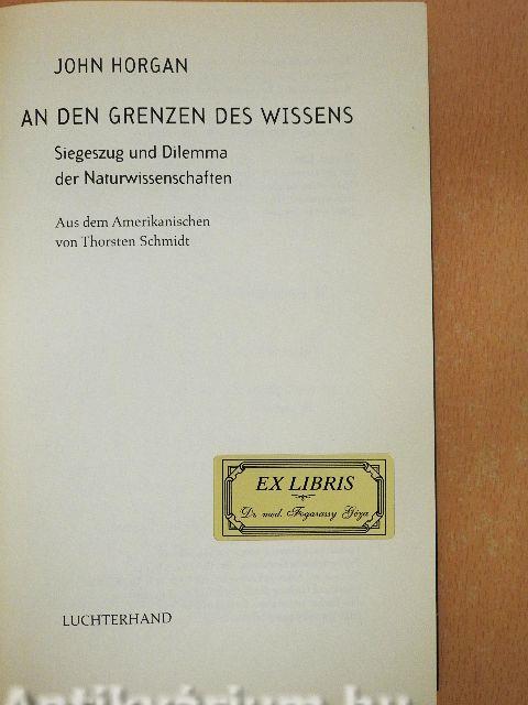 - V»Nach Jahrhunderten der Durchbrüche auf allen Gebieten zwischen Astronomie und Zoologie, so John Morgans pro-vokative Behauptung, sind die meisten großen Menschheitsfragen nach Ursprung und Aufbau von Leben und Kosmos gelöst - und die übrigen als unlösbar enttarnt Seit einigen Monaten sorgen Morgans Thesen_in Ameril<a für erregte Debatten inzwischen ist der Streit auf Europa übergeschwappt.« -Ci Der Spiegel