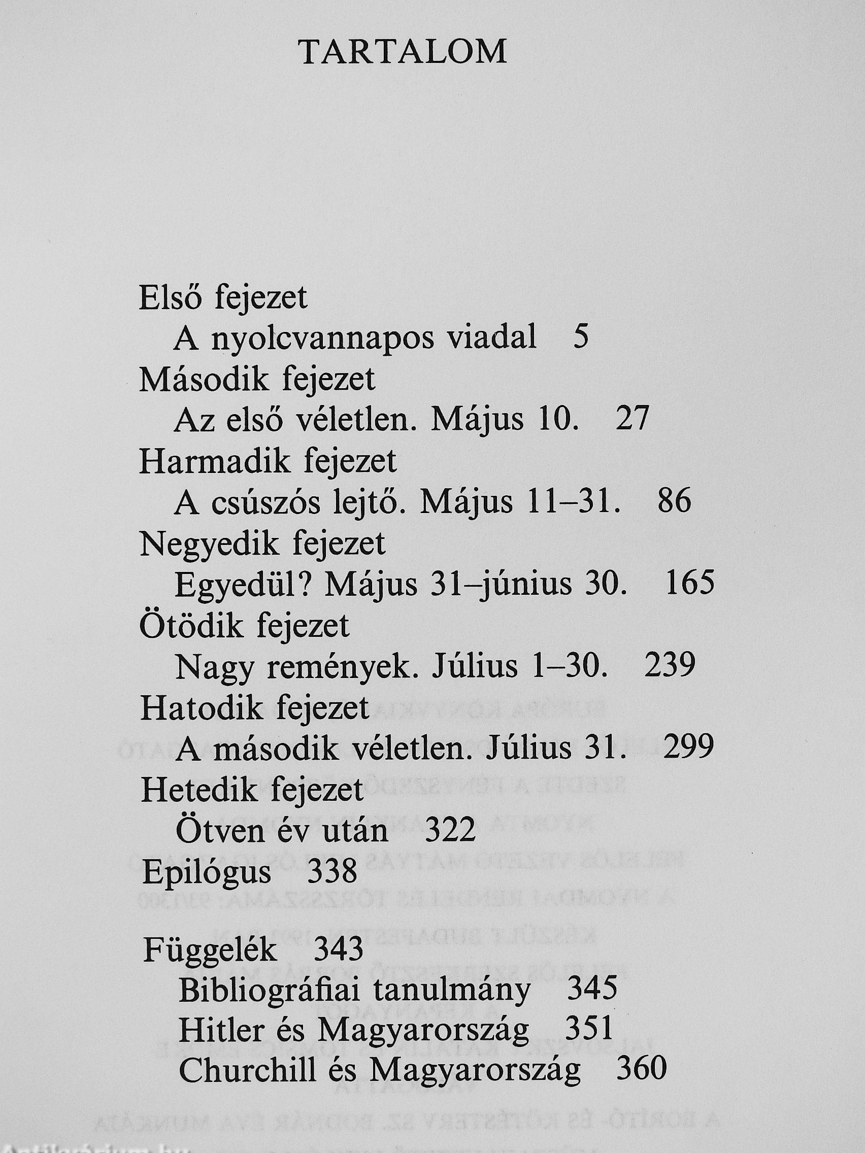 John Lukacs mindeddig kimerítetlen forrásokra támaszkodva írja le az eseményeket, és ebben a könyvében is felcsillantja kivételesen vonzó elbeszélőtehetségét. Nem éri be a történelmi tények feldolgozásával: alapos és részletes elemzést nyújt mind Churchill, mind Hitler személyiségéről és pszichológiájáról.
